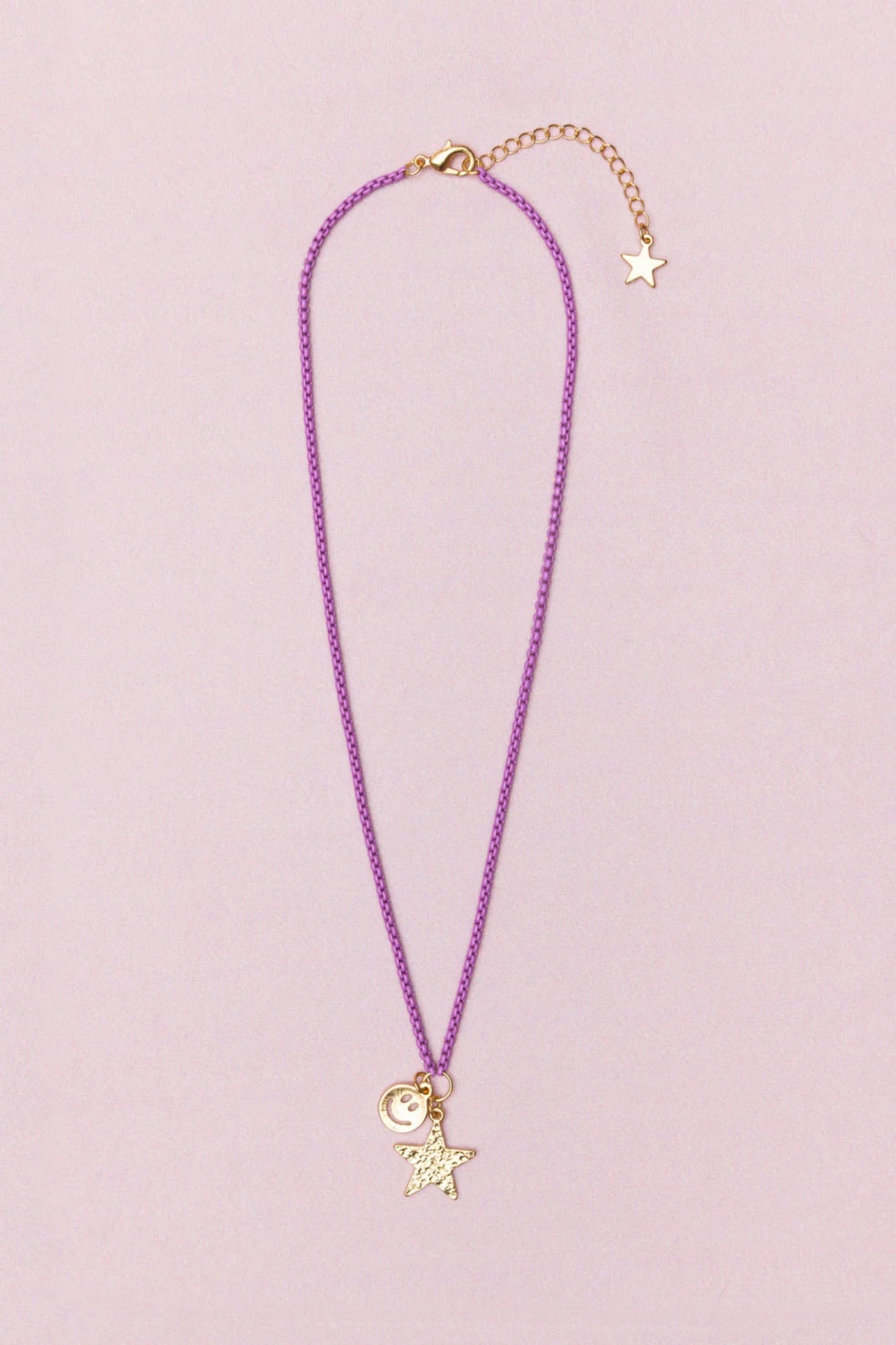 Introducing our Boutique Chic Starshine Smiles Necklace, a trendy accessory that is crafted with a vibrant purple chain link chain, and two beautiful pendants. The centrepiece of this necklace is a delightful smiley face and star pendant, perfect for those who love to embrace their individuality and spread positivity.