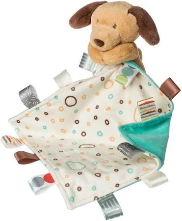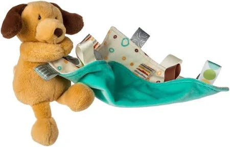 Cuddlebuds are a combination of a soft toy and a blanket. Their size makes them perfect for baby cuddles and play. Cuddlebuds features Taggies famous ribbons, which bring comfort and engagement to curious babies. This tan Puppy friend gives a big hug to his supersoft tactile blanket, adorned with silky ribbons