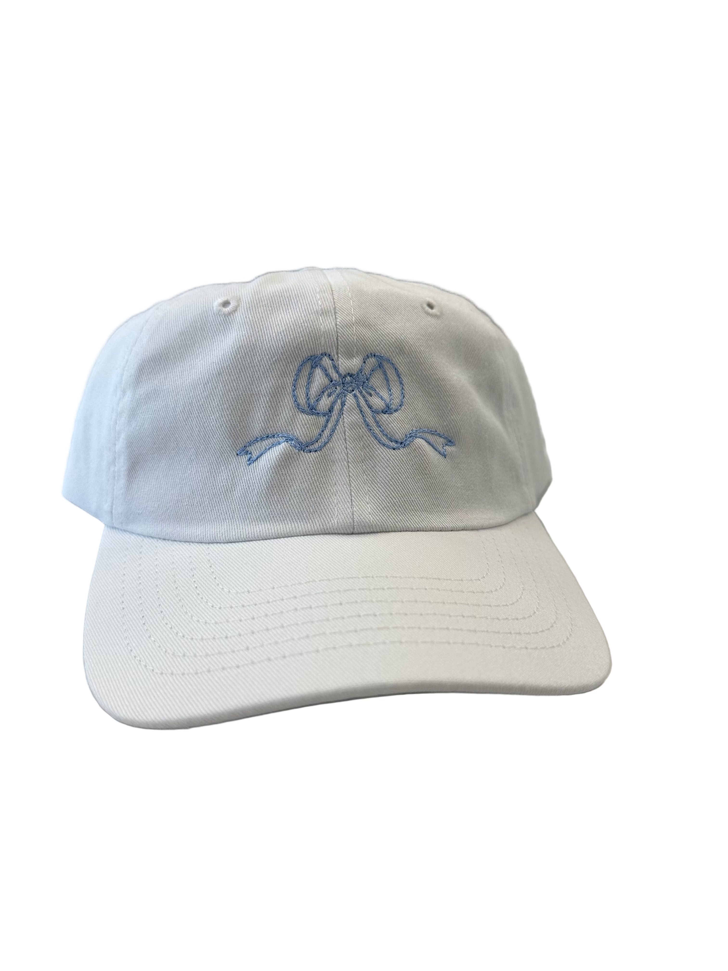 A feminine touch to your everyday baseball cap! Designed just for kids, this ball cap features a blue embroidered bow. Comes in a pink or white hat option. It's lightweight and adjustable keeping them cool and stylish all year long.