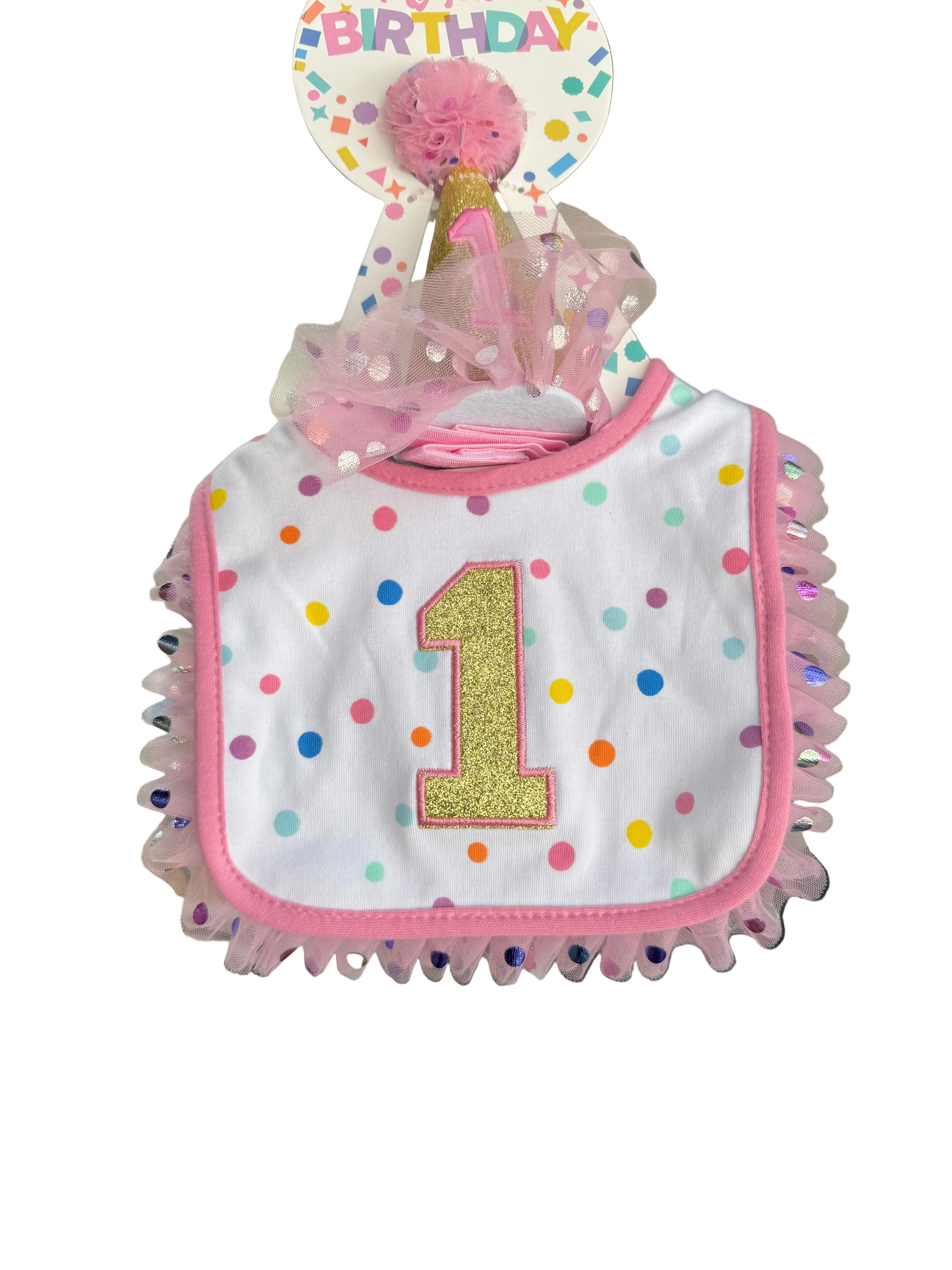 Celebrate her big milestone in the sweetest way with our First Birthday Smash Cake Bib & Crown Set! Designed to make her special day even more memorable, this adorable set is perfect for cake smash photos, parties, and keepsake moments.