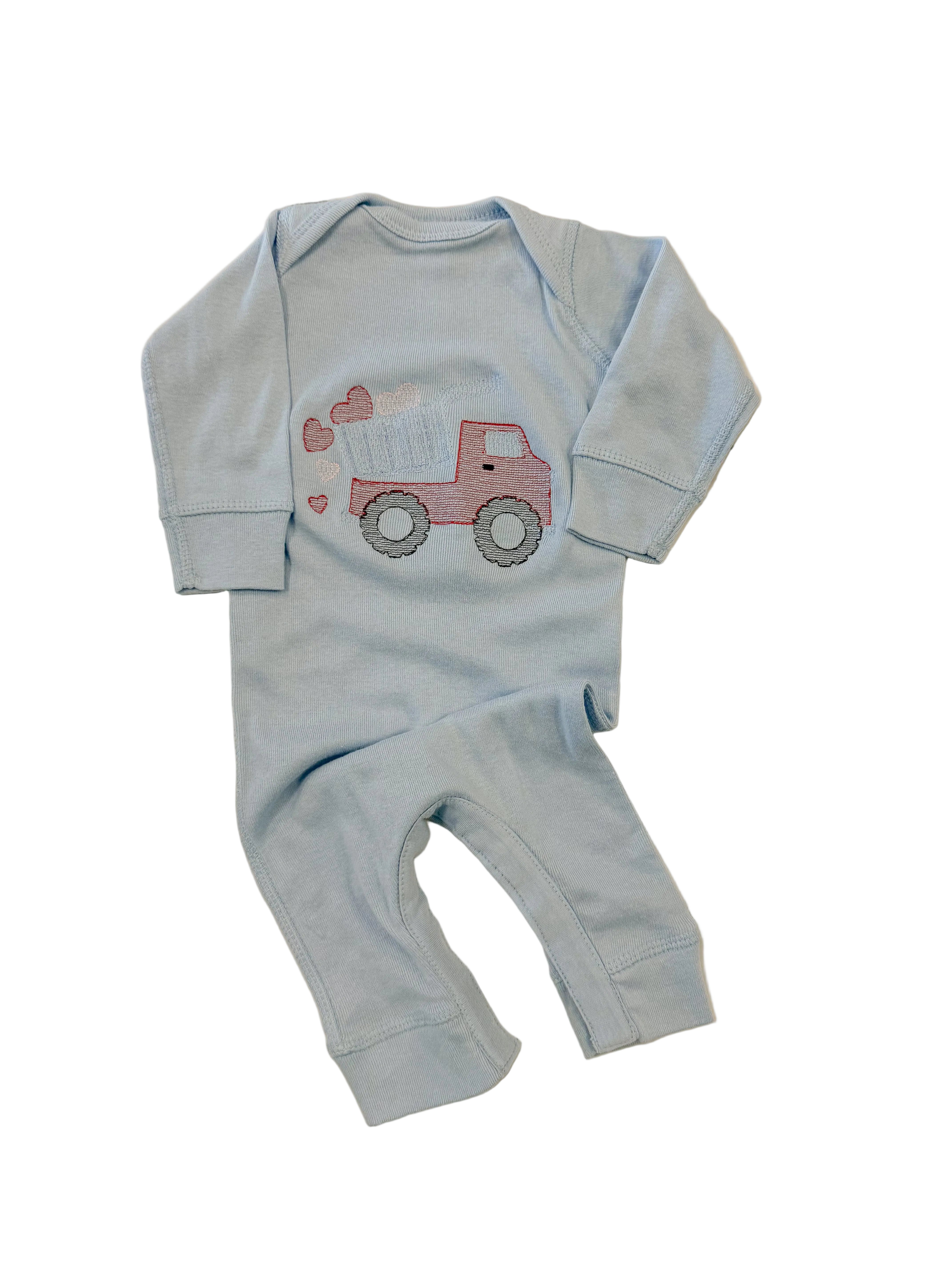 Love Dump Truck Embroidered Romper – Baby Boys Newborn to 24M