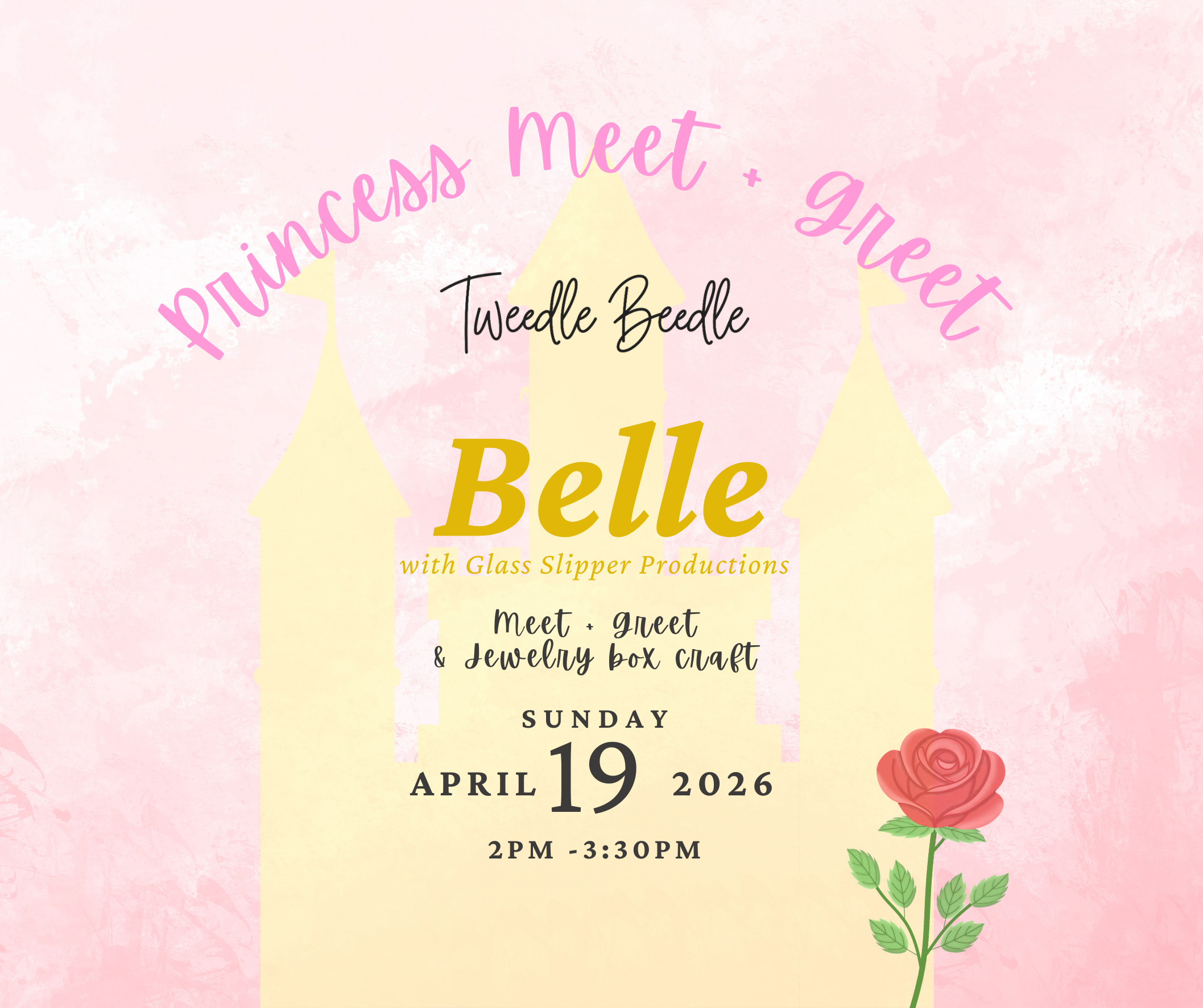 Then the magic truly begins with a one-hour dance party and royal meet & greet with Belle. Enjoy dancing, photos, and unforgettable fairytale fun inside the boutique.