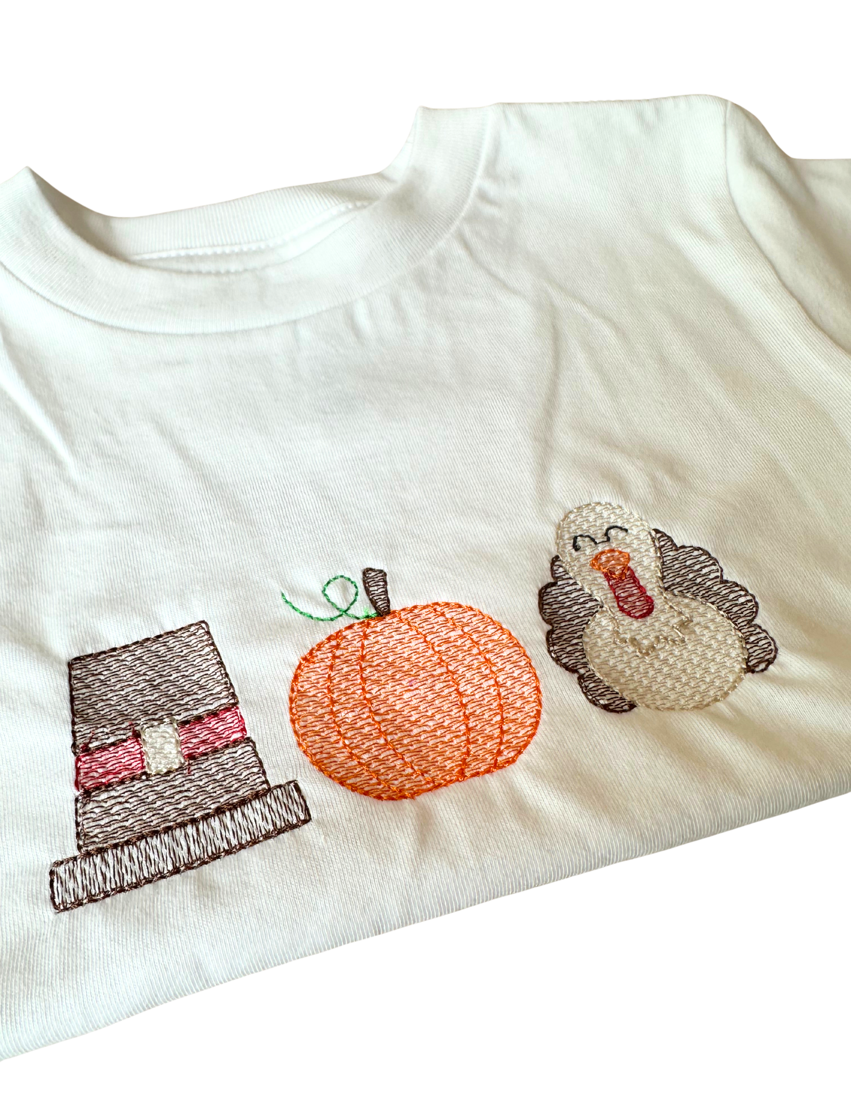 Turkey, Hat & Pumpkin Embroidered T-Shirt