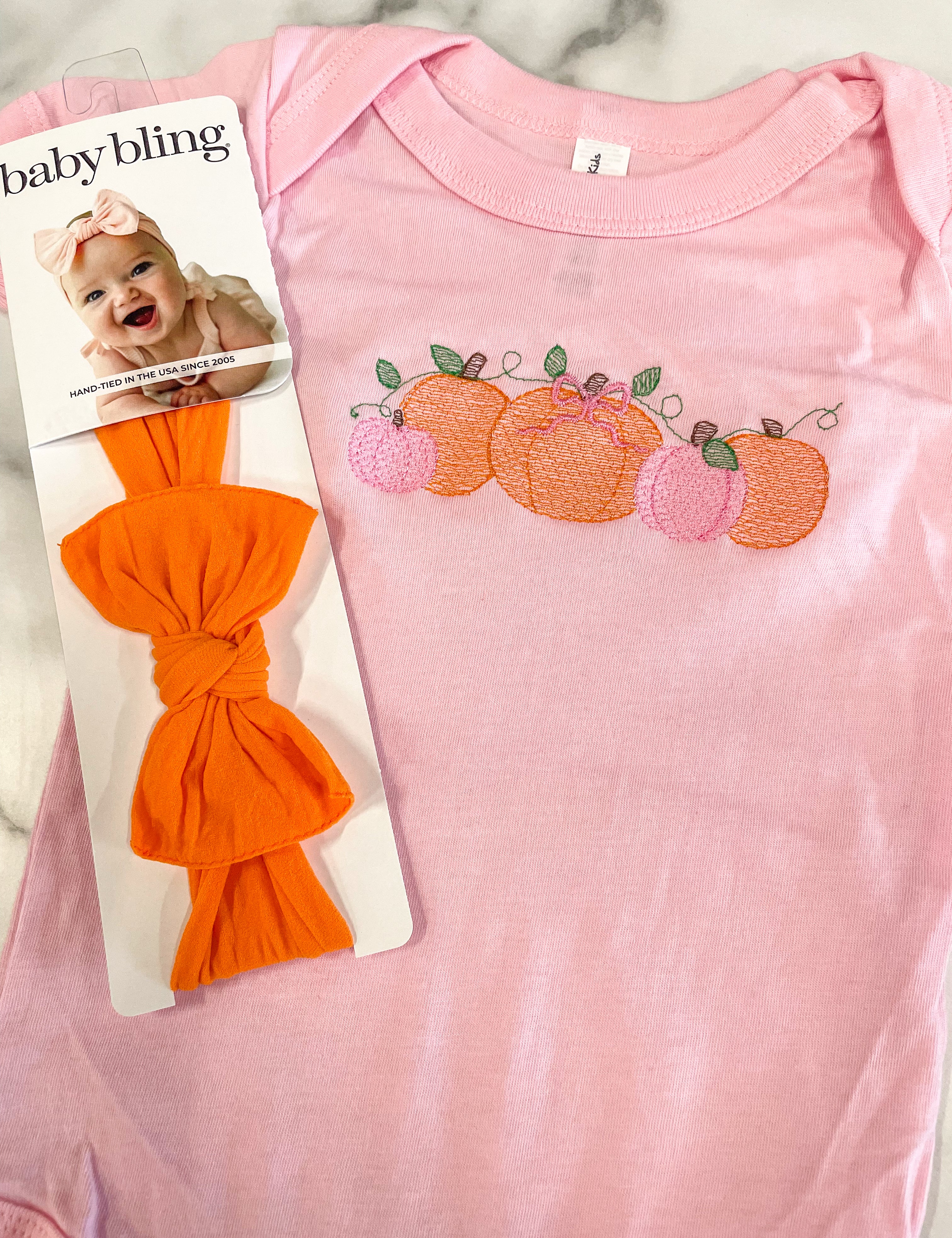 Pink Sawyer Bubble with Hand-embroidery - Pumpkins