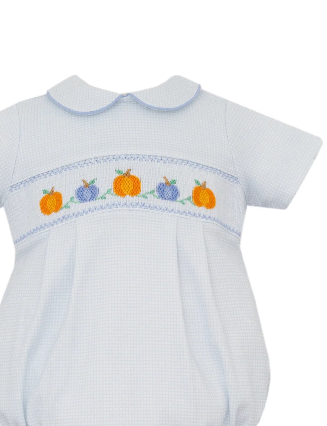 Smocked Truck & Pumpkins Blue Microcheck Jon Jon