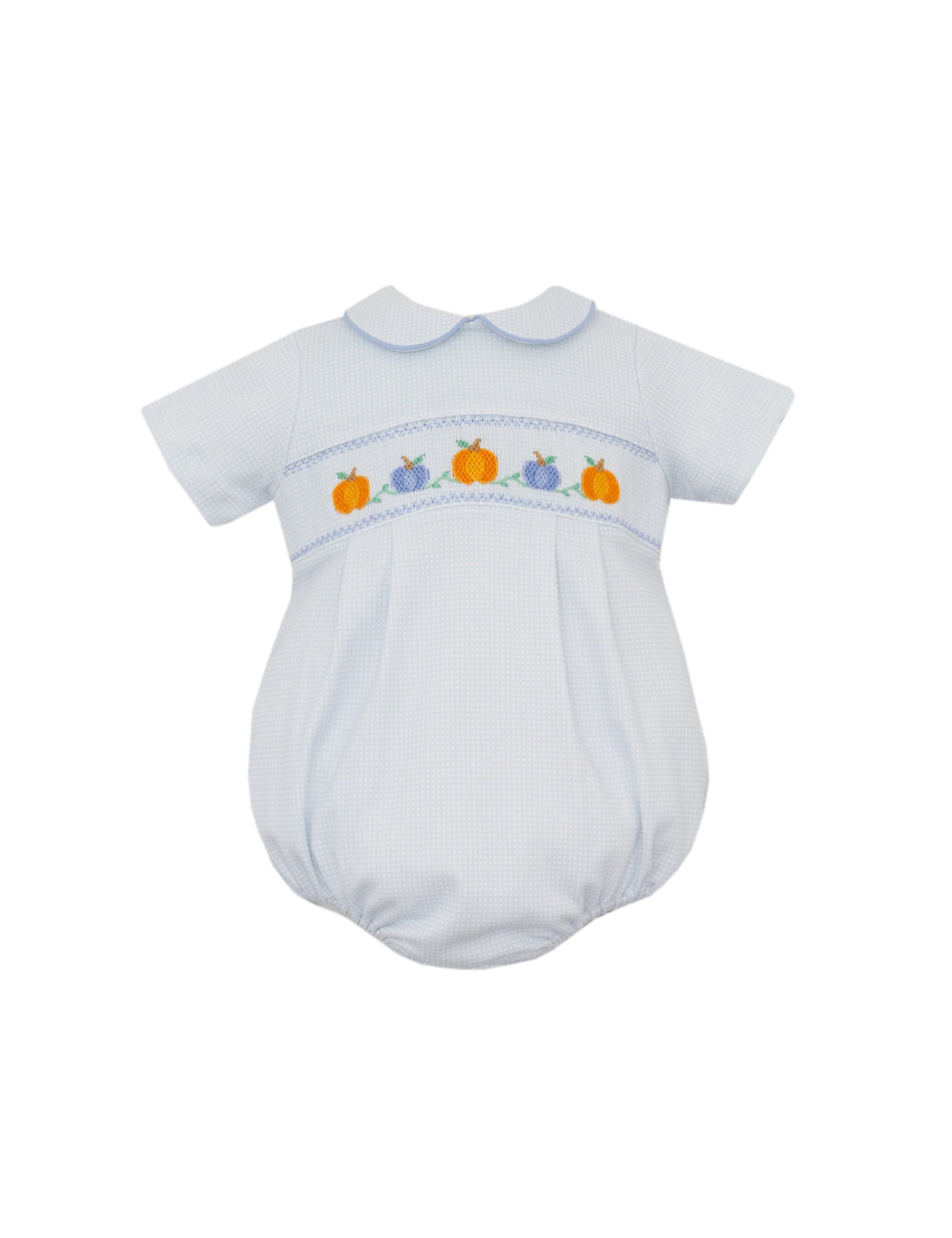 Blue Gingham Embroidered Pumpkin Bow Bubble