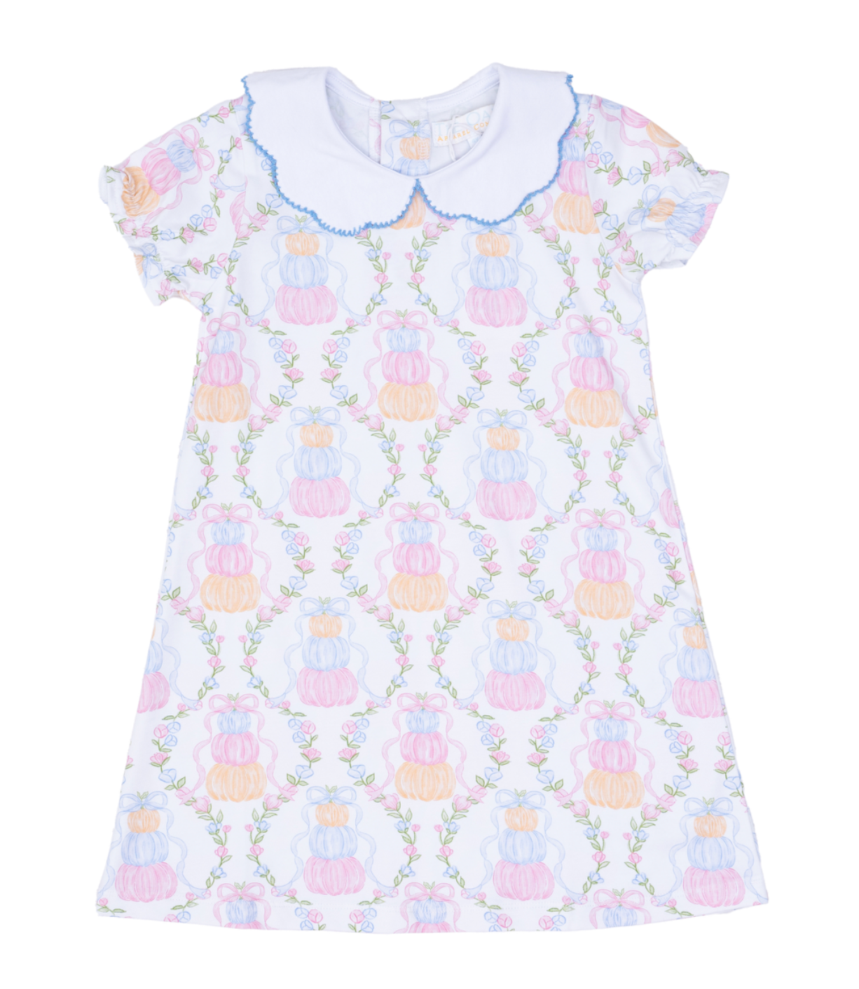 Blue Gingham Embroidered Pumpkin Bow Dress