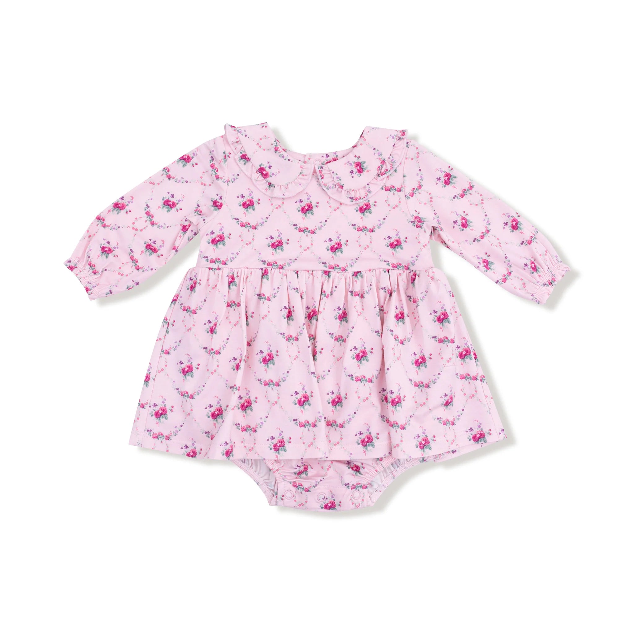 Rose Garden Trellis - Long Sleeve Peter Pan Ruffle Collar Bubble with Skirt