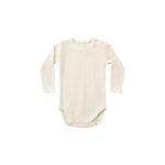 Long sleeve onesie in our lightweight waffle knit, featuring the sweetest crochet lace ruffle detail. Designed with shoulder and bottom snaps for easy changes.