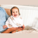 This 2-in-1 combo burp cloth/bib is as beautiful as it is functional and are a hit with first-time moms. It can be used as both an over-the-shoulder burp cloth and also as a snappable bib. Be the hit of the baby shower while gifting the sentimental love of home. Discover the ultimate baby gift solution for new moms with our versatile and stylish Baby Burp Cloth & Bib Combo! The soft, organic material provides the ultimate comfort for baby's delicate and soft skin. Make a lasting impression with this unique, high-rated baby gift.