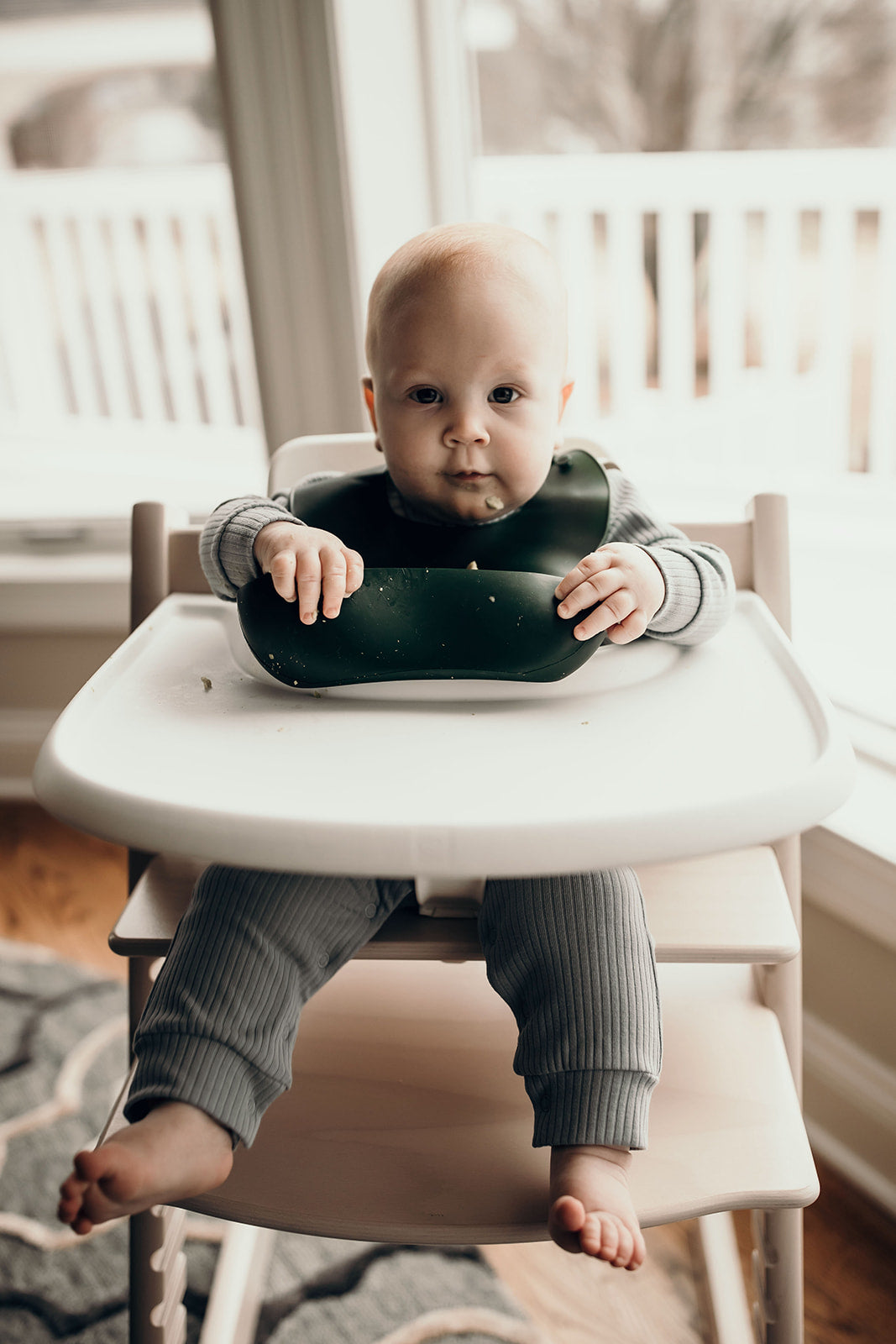 Forest Green Silicone Bib with Crumb Catcher