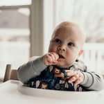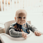Designed in the USA, these silicone printed bibs with crumb catcher are stylish while keeping your little one comfy an clean. Made from food-grade silicone, our silicone bibs with pocket are BPA and phthalate free.