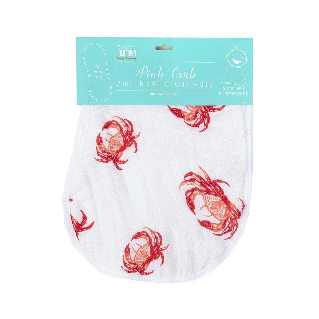 Pink Crab 2-in-1 Burp Cloth and Bib (Unisex)