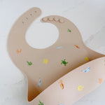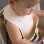 Our bibs are adjustable, perfect for baby or toddler, and are hard for kids to pull off. Suitable for babies from 6 months to toddler! No laundering or long drying times. Just rinse, wipe and it’s ready to use again. These bibs are dishwasher safe for your convenience, and repel mold, odors and stains.