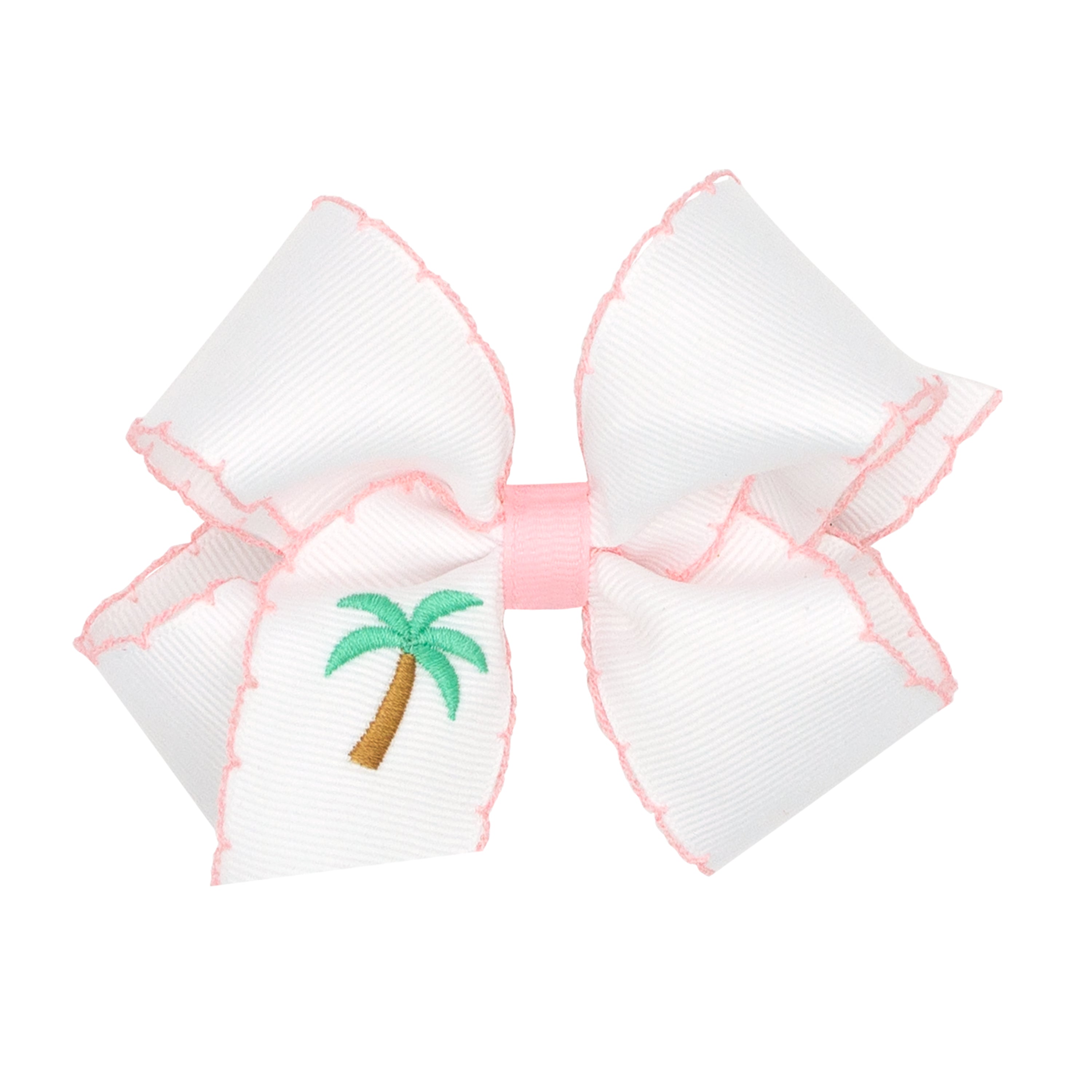 Palm Tree Embroidered Grosgrain Hair Bow with Moonstitch Edge