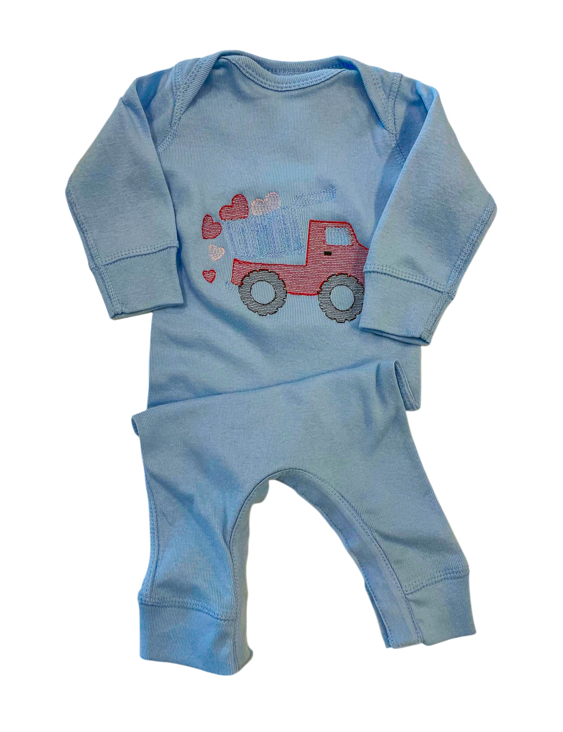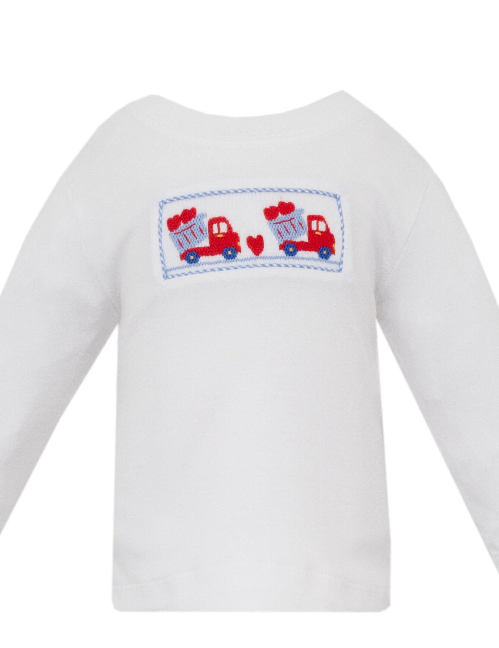 Valentines Day Boy's Long Sleeve Smocked Trucks