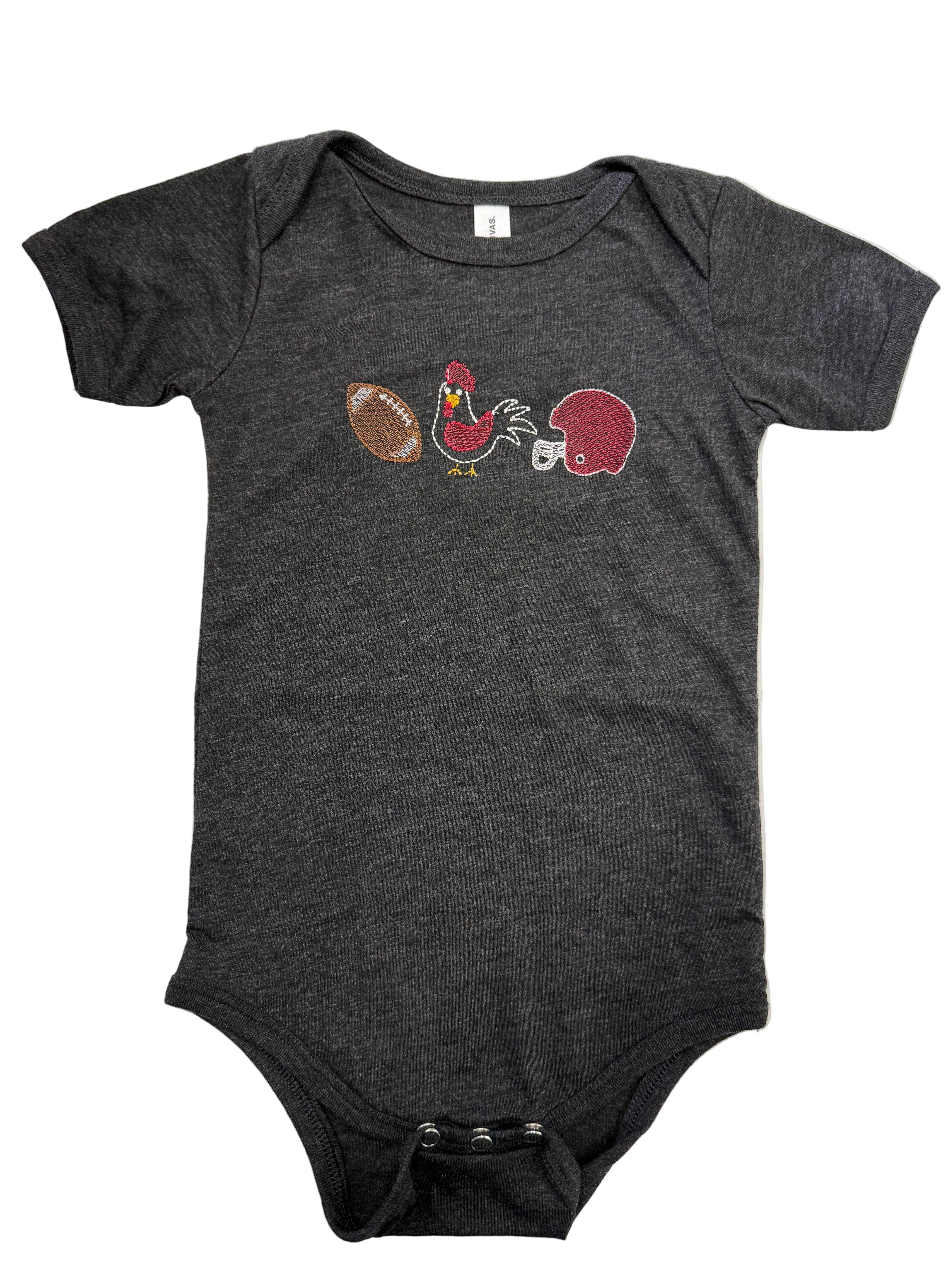 • Premium quality bodysuit with custom USC Football Rooster Helmet embroidery