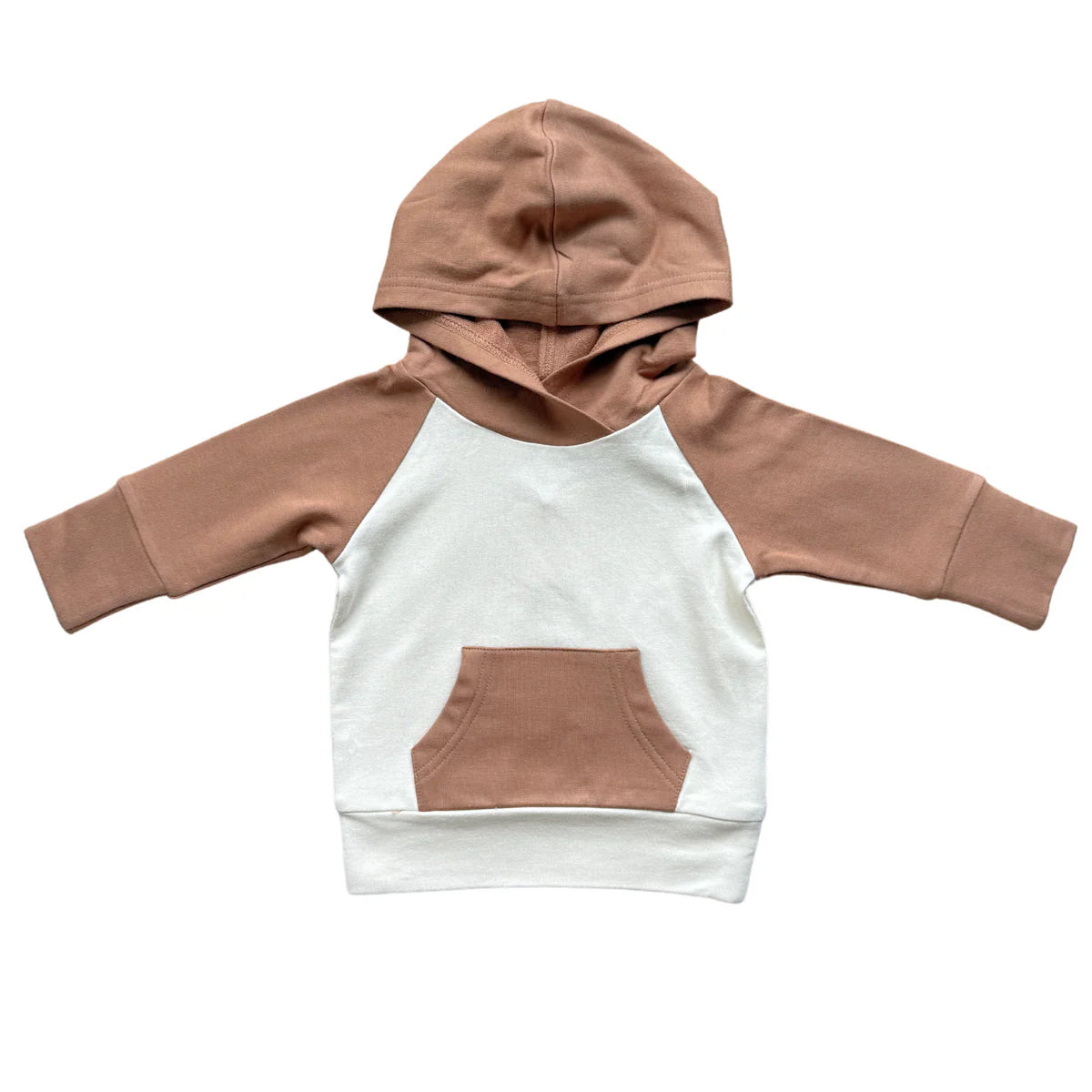 The hoodie features a kangaroo pocket, perfect for storing small treasures or keeping hands warm. Ribbed cuffs and hem provide a secure fit, making this hoodie great for layering or wearing on its own. Available in a variety of fun and neutral color combinations, it’s a versatile piece for any wardrobe.