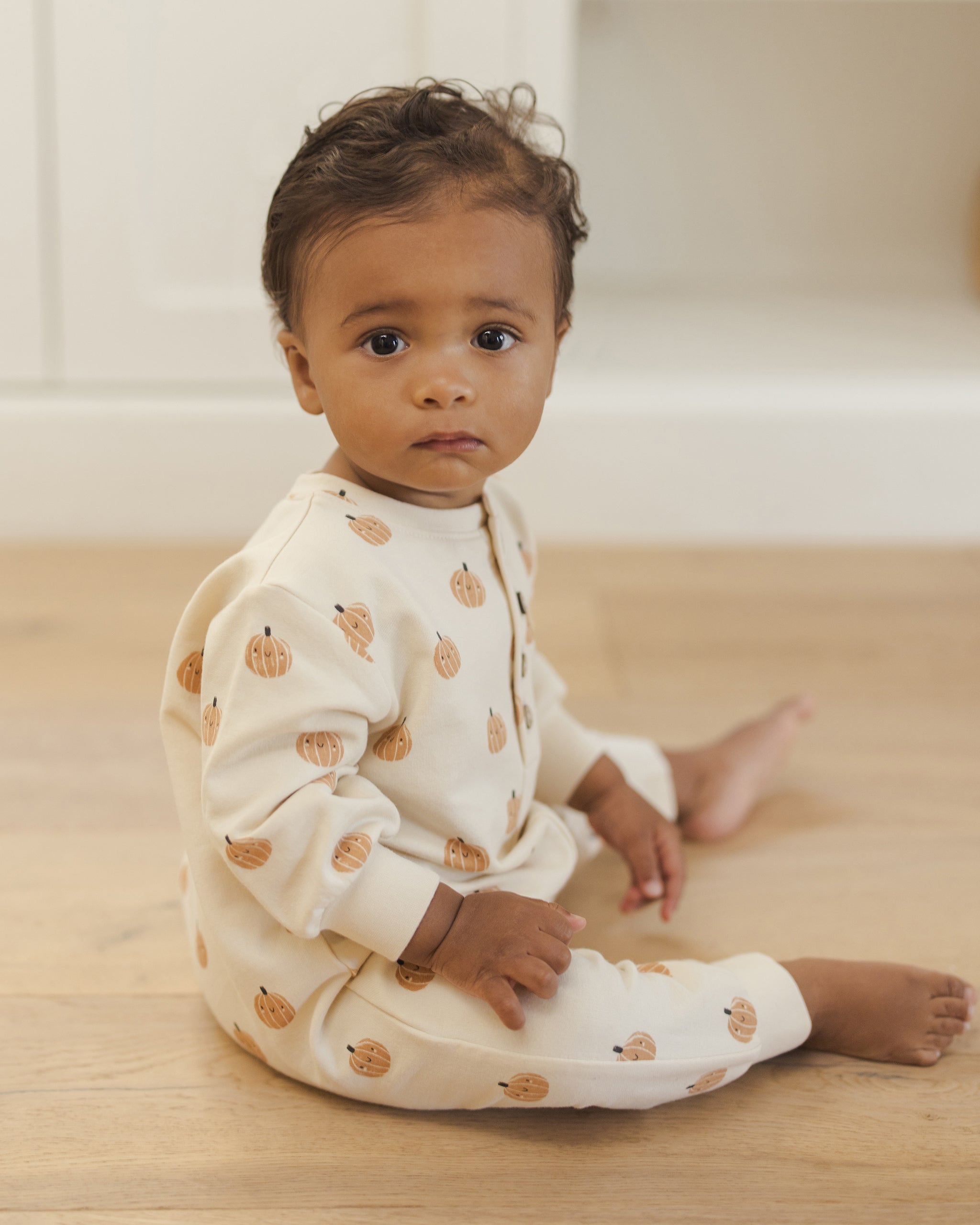 Relaxed Fleece Jumpsuit II Smiley Pumpkins by Quincy Mae a Rylee + Cru Brand.
