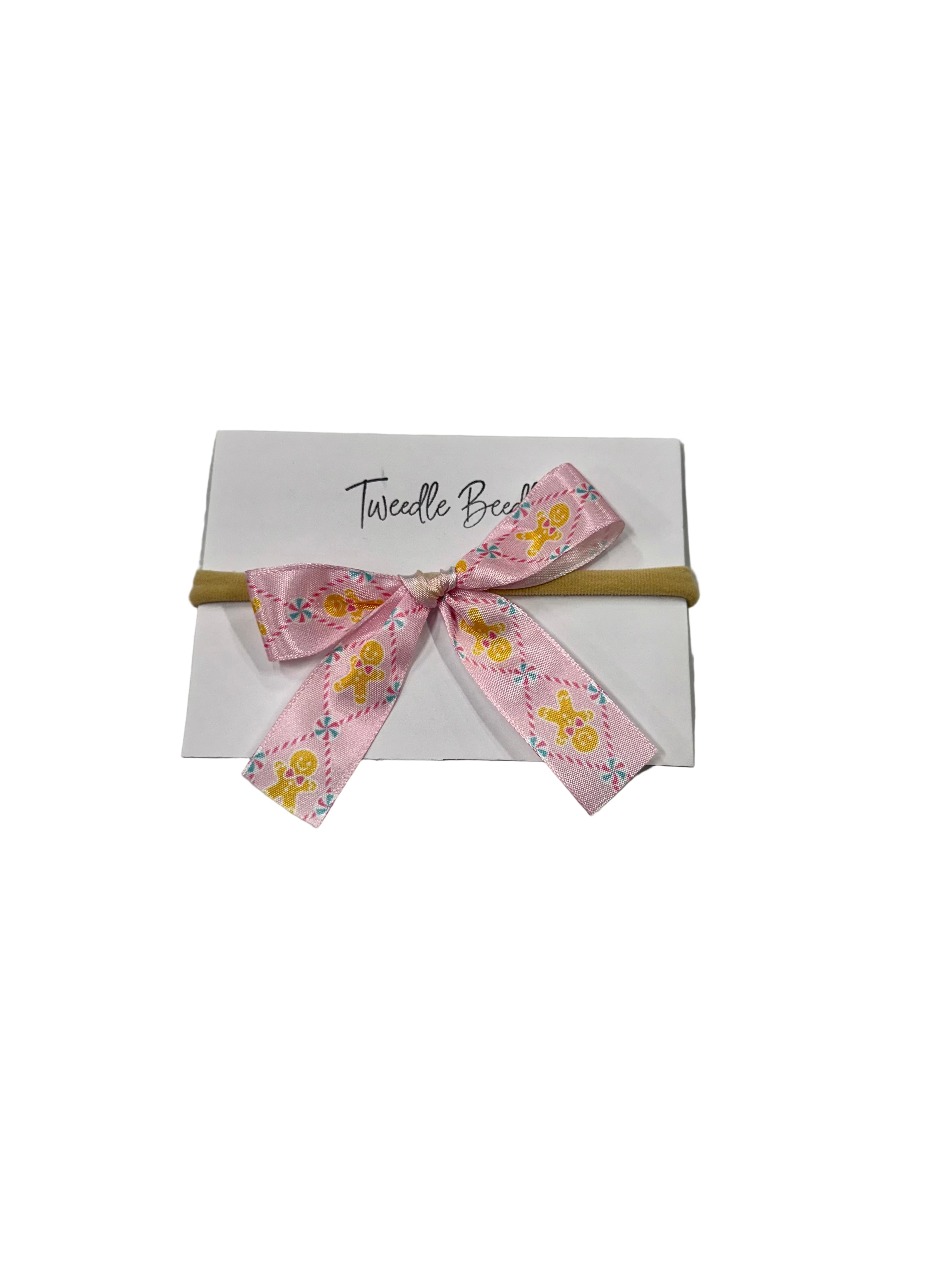 Bring festive charm to your little one’s holiday wardrobe with this pink Christmas gingerbread bow on a soft nylon headband. Designed for comfort and style, this baby headband features a beautifully crafted pink bow with an adorable gingerbread pattern, perfect for seasonal photos and celebrations. The premium nylon band is gentle, stretchy, and secure, ensuring a comfortable fit for newborns, infants, and toddlers without leaving marks.