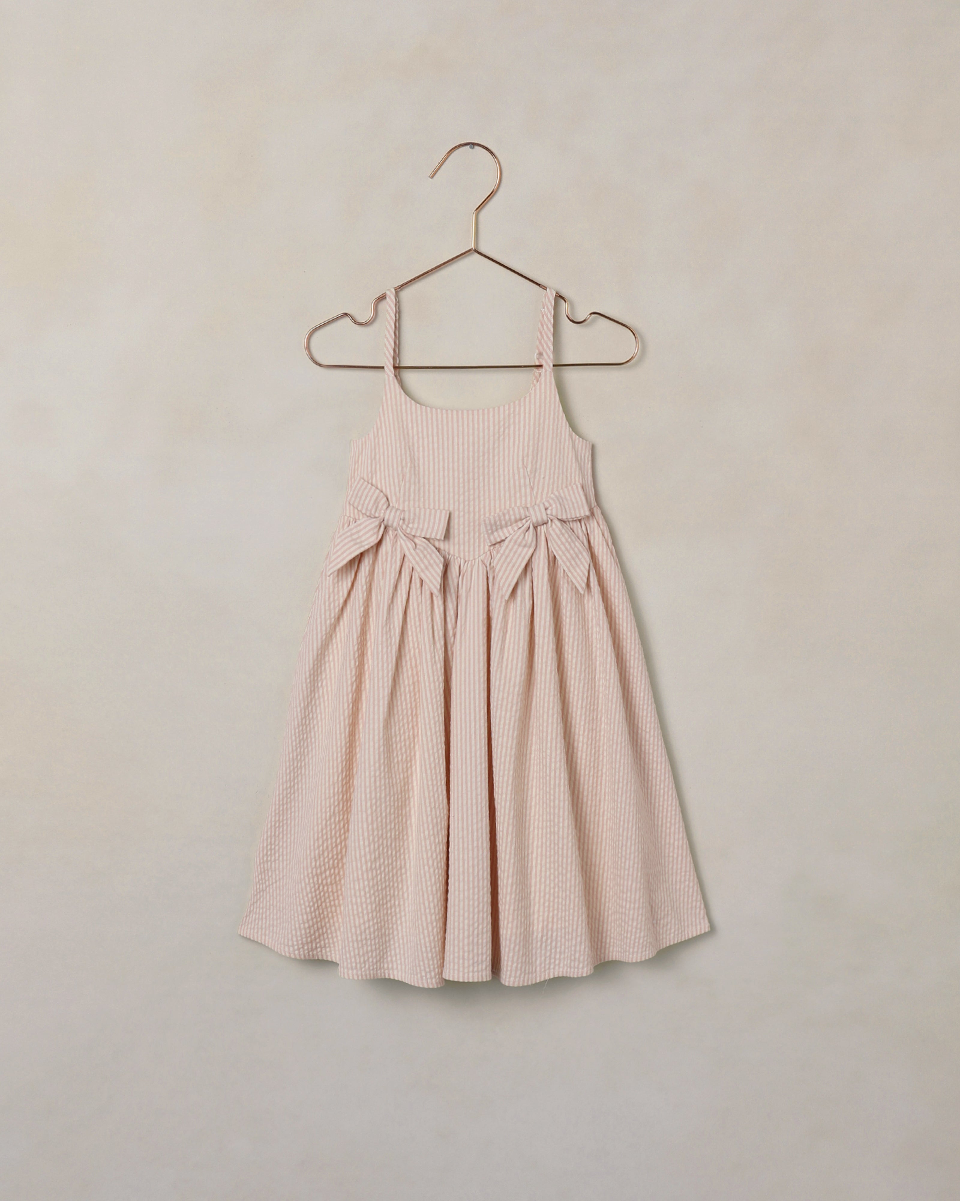 Our fun and flowy Beatrice Midi Dress features fixed front bows, spaghetti straps, smocking at the back, and a front V waistline.