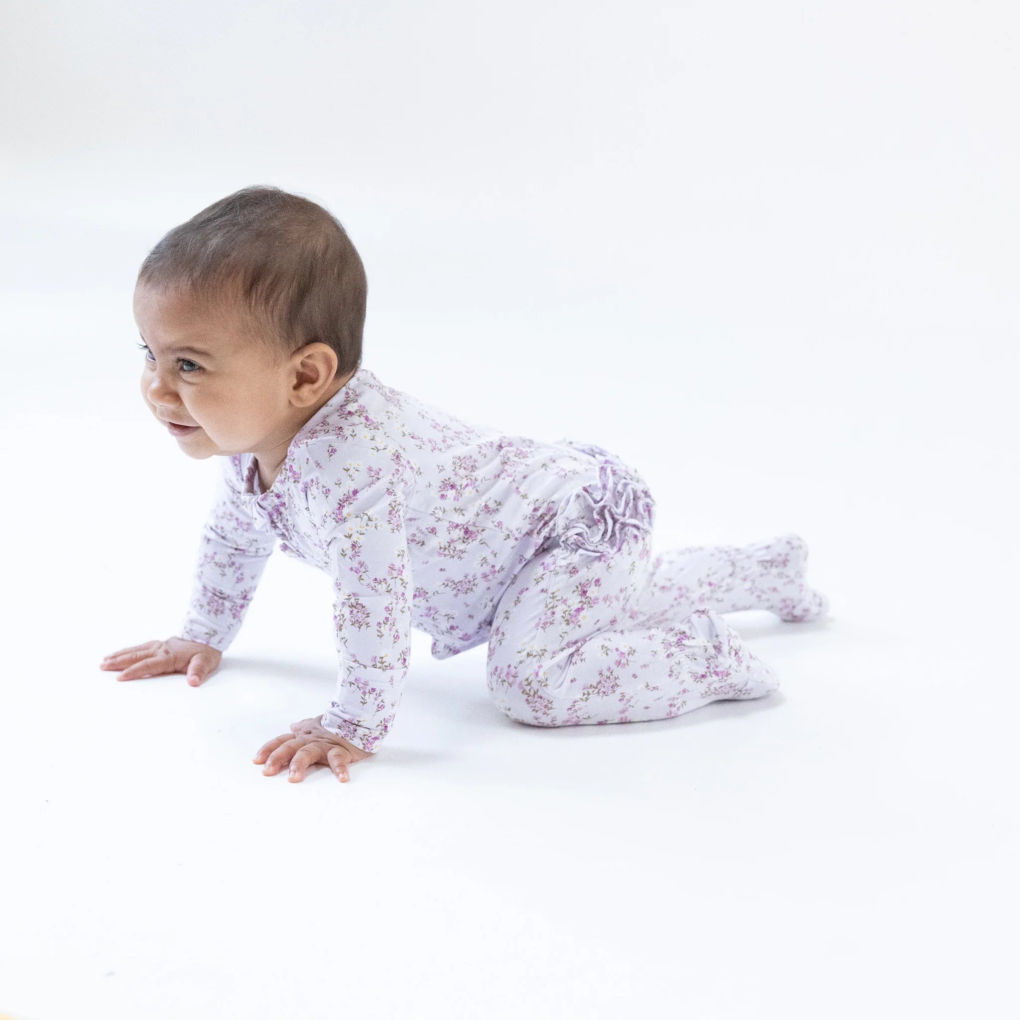 Dress your little one in effortless charm with our Ruffle Front 2-Way Zipper Footie. Crafted from buttery-soft viscose from bamboo, this footie is designed for ultimate comfort and easy changes. The delicate ruffle front detail adds a playful, elegant touch, making it a perfect choice for naptime, playtime, or anytime.