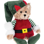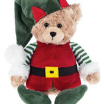 A soft, cuddly bear plush dressed in festive elf clothes, complete with a pointy hat, tiny boots, and a cheerful holiday outfit. Its cute expression and cozy details make it look like a magical helper straight from the North Pole.