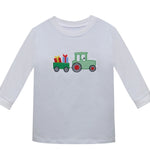 Bring a little farm charm to the holiday season with our White Houston Shirt – Tractor with Gifts. This classic long sleeve tee features a festive green tractor hauling a load of wrapped presents, perfect for celebrating the holidays in a playful, Southern-inspired style.