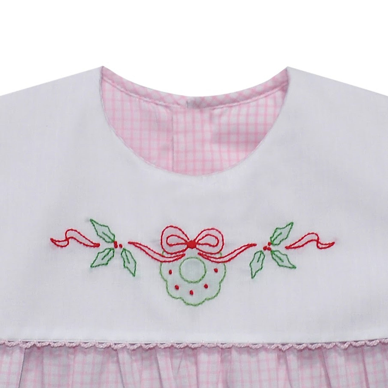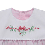 Our Pink Reese Dress with Embroidered Wreath is a charming classic, designed with heirloom quality and holiday cheer in mind. Crafted in soft pink gingham, this darling dress features a hand-smocked white yoke adorned with a delicate embroidered wreath — a festive touch perfect for special occasions or seasonal portraits.