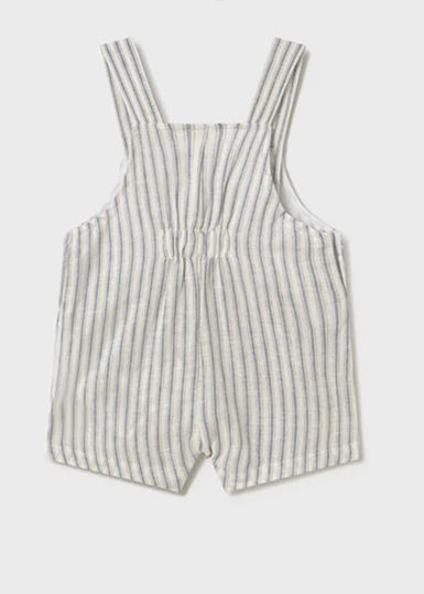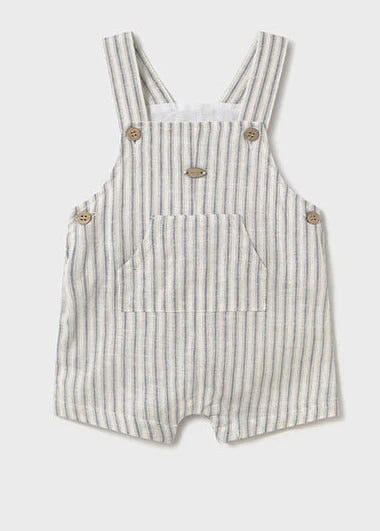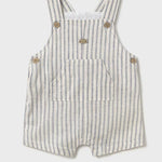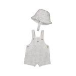 Baby Boys Striped Overalls & Hat Set – Cotton-Linen Blend (Newborn to 18M)