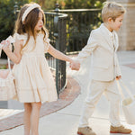 Featuring our ‘floral stripe’ print on our ‘ivory’ hue - a gorgeous vintage design with dainty spring blooms and delicately thin stripes.