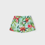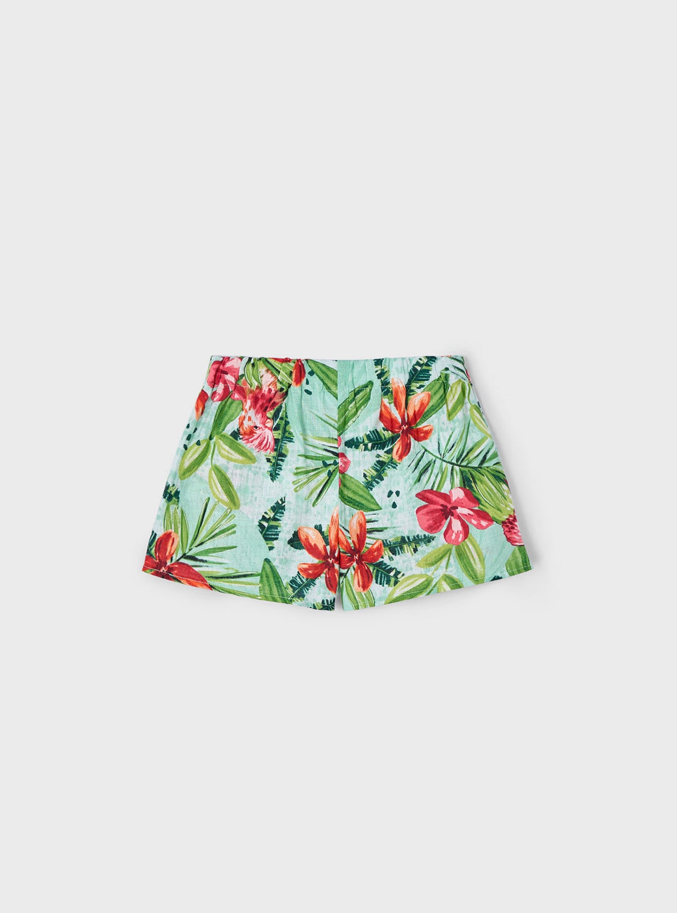 Floral tropical print shorts feature side panel overlays and ring detailing on the waist with an attached belt look. Enjoy a great fit with a stretchy waist band.