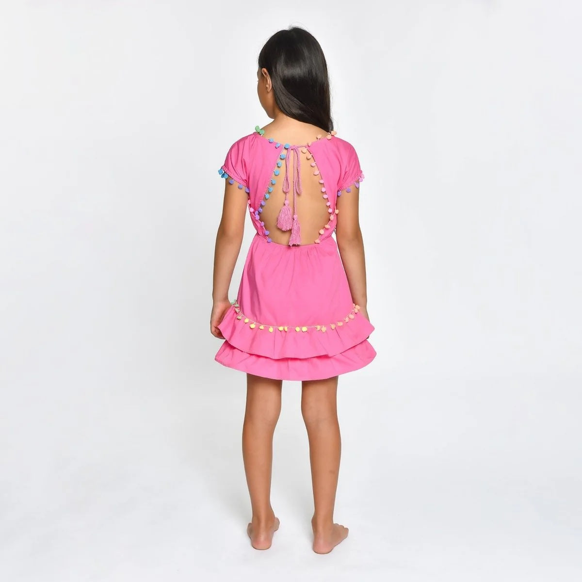 This Little Peixoto dress is fun and fabulous. Bright colors and contrast trim make it perfect for any party. The keyhole detail at the back also makes a statement thanks to the tassel tie details