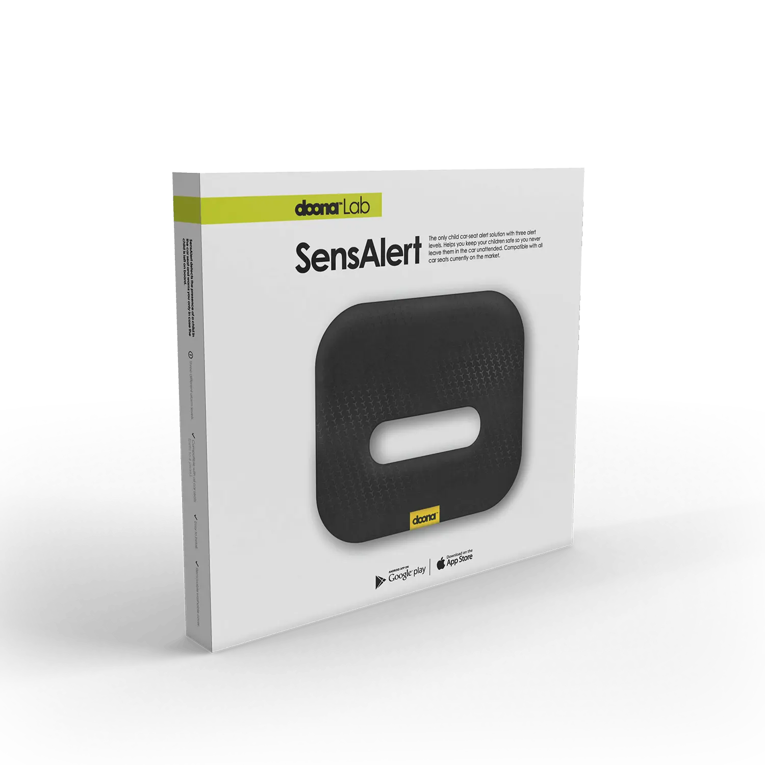 SensAlert is the only child car seat alert solution with three levels of alert to keep your child safe, so they're not left unattended in the car. SensAlert detects the presence of a child on board and triggers the alert system when the caregiver moves away from the car (the smartphone loses Bluetooth connection with the SensAlert device).