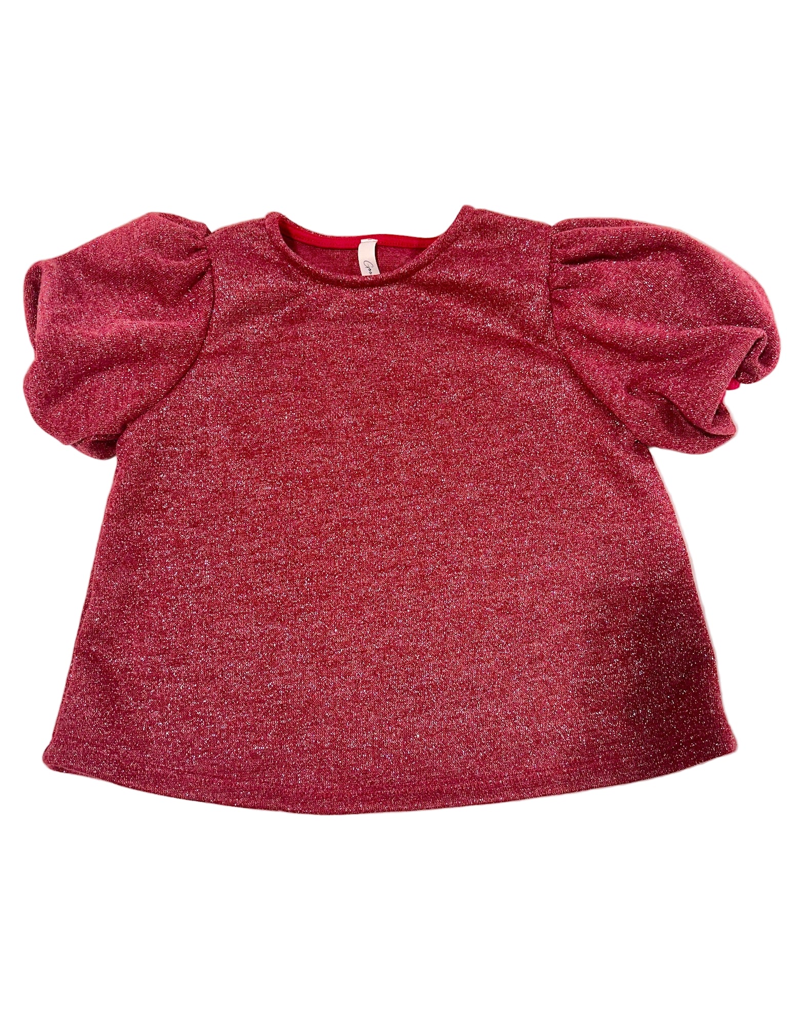 Red Mink Puff Sleeves Top