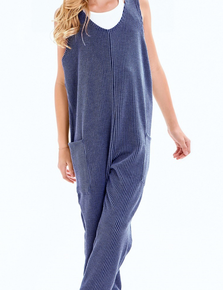 Navy Rib Sleeveless Jumpsuit