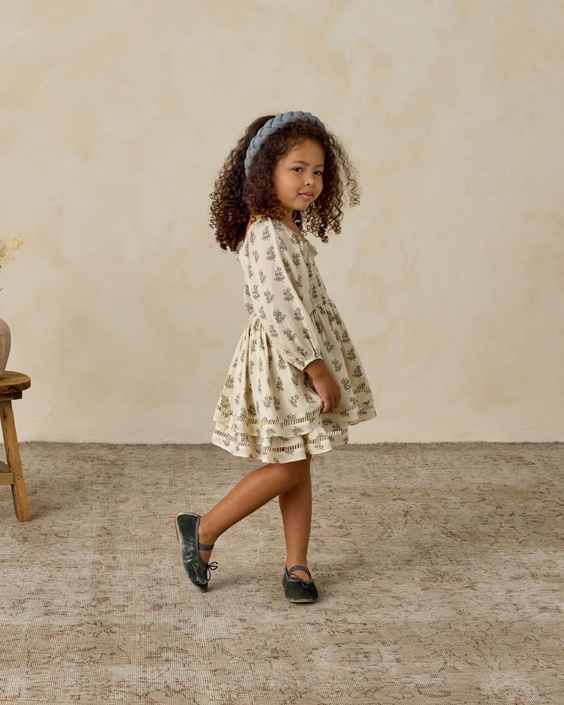 Girls Square Neck Floral Ruffle Midi Dress- Rust