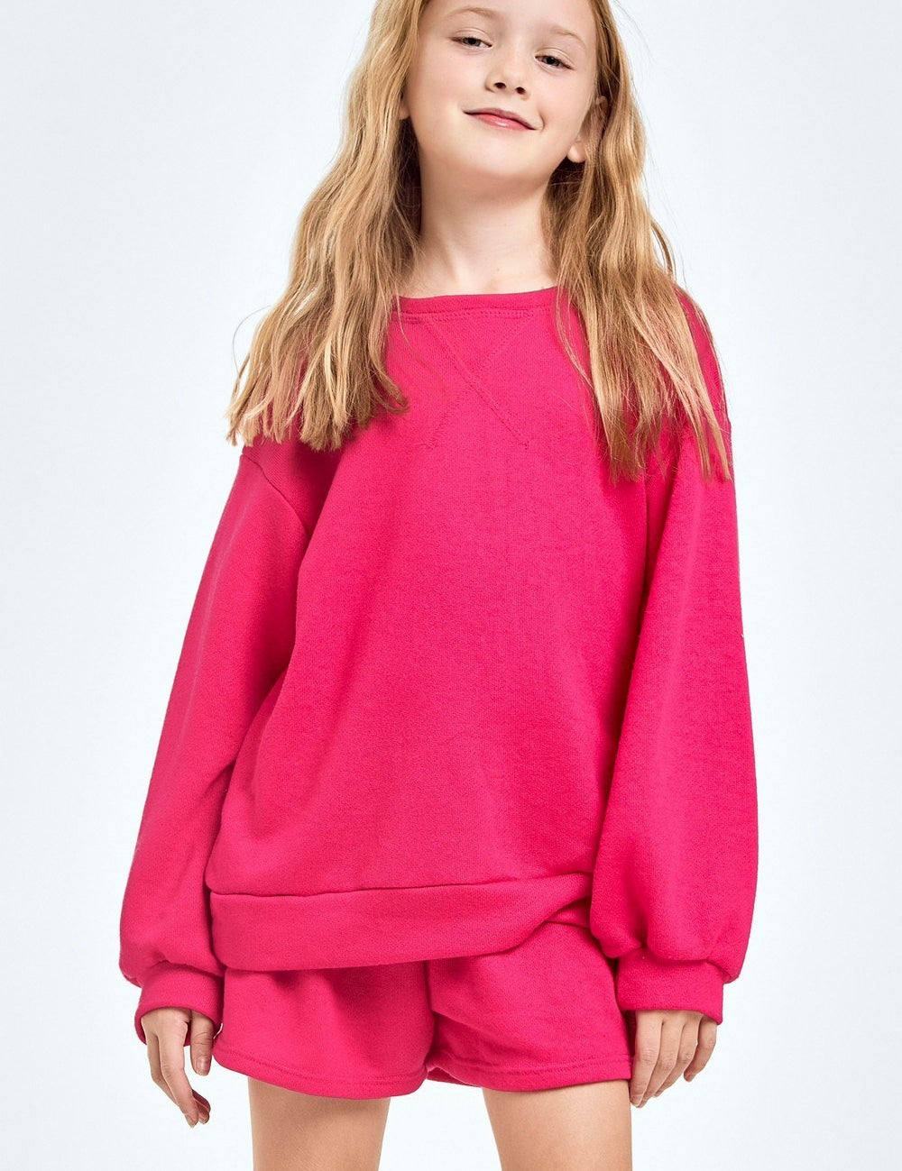 Hot Pink Cotton French Terry Sweatshirt & Shorts Set