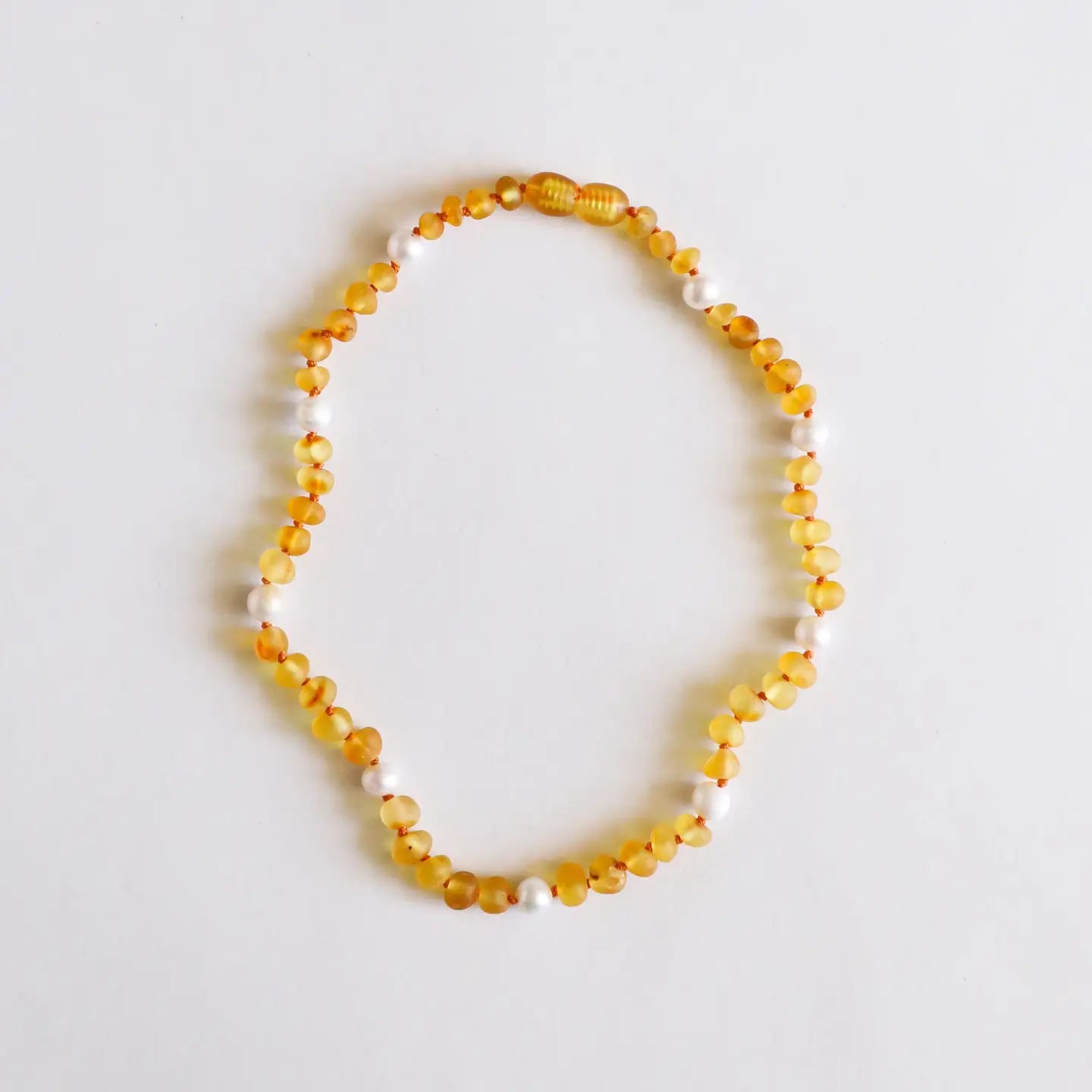 Raw Honey Baltic Amber + Pearl Halo Necklace