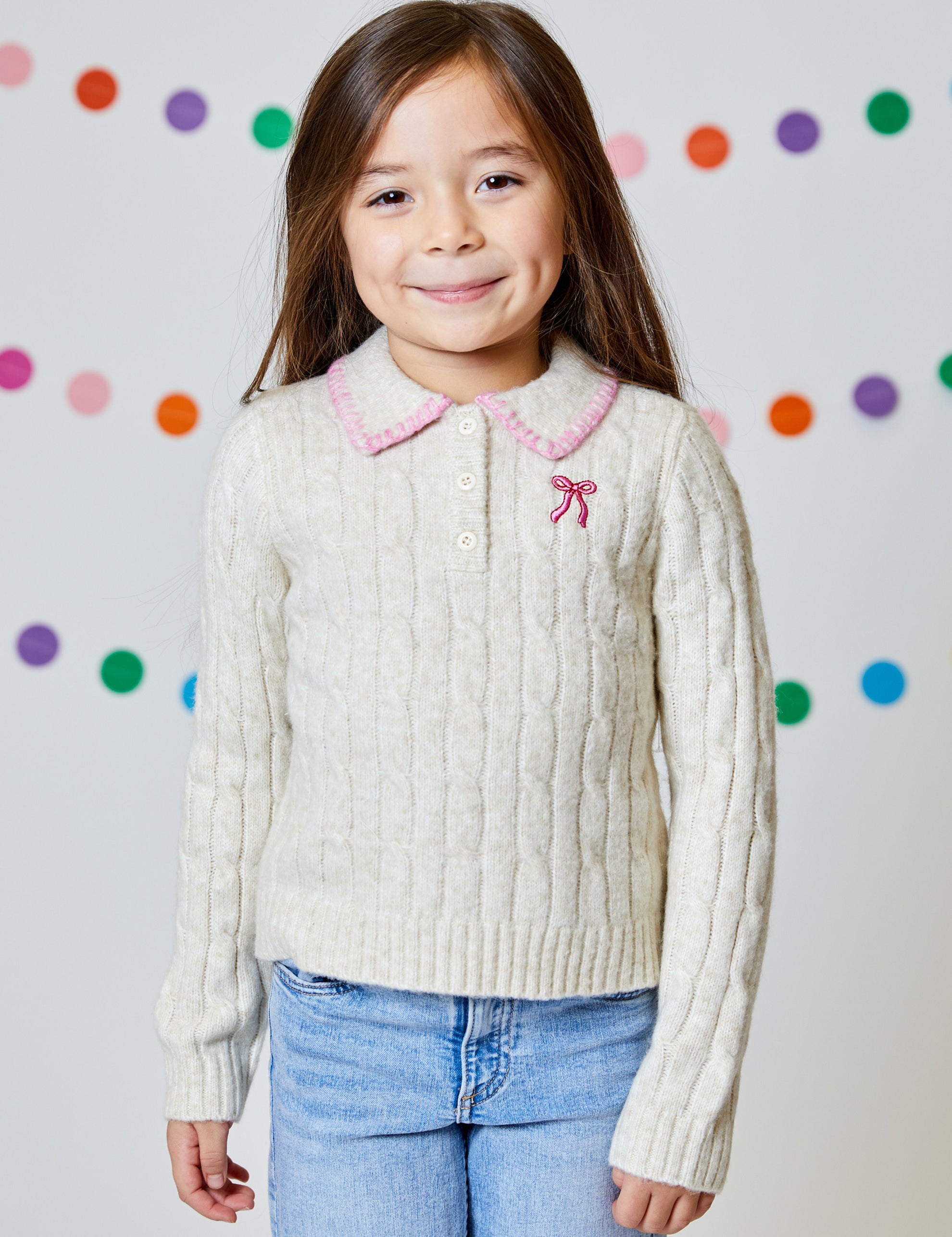 Tan Sweater with Embroidered Bow