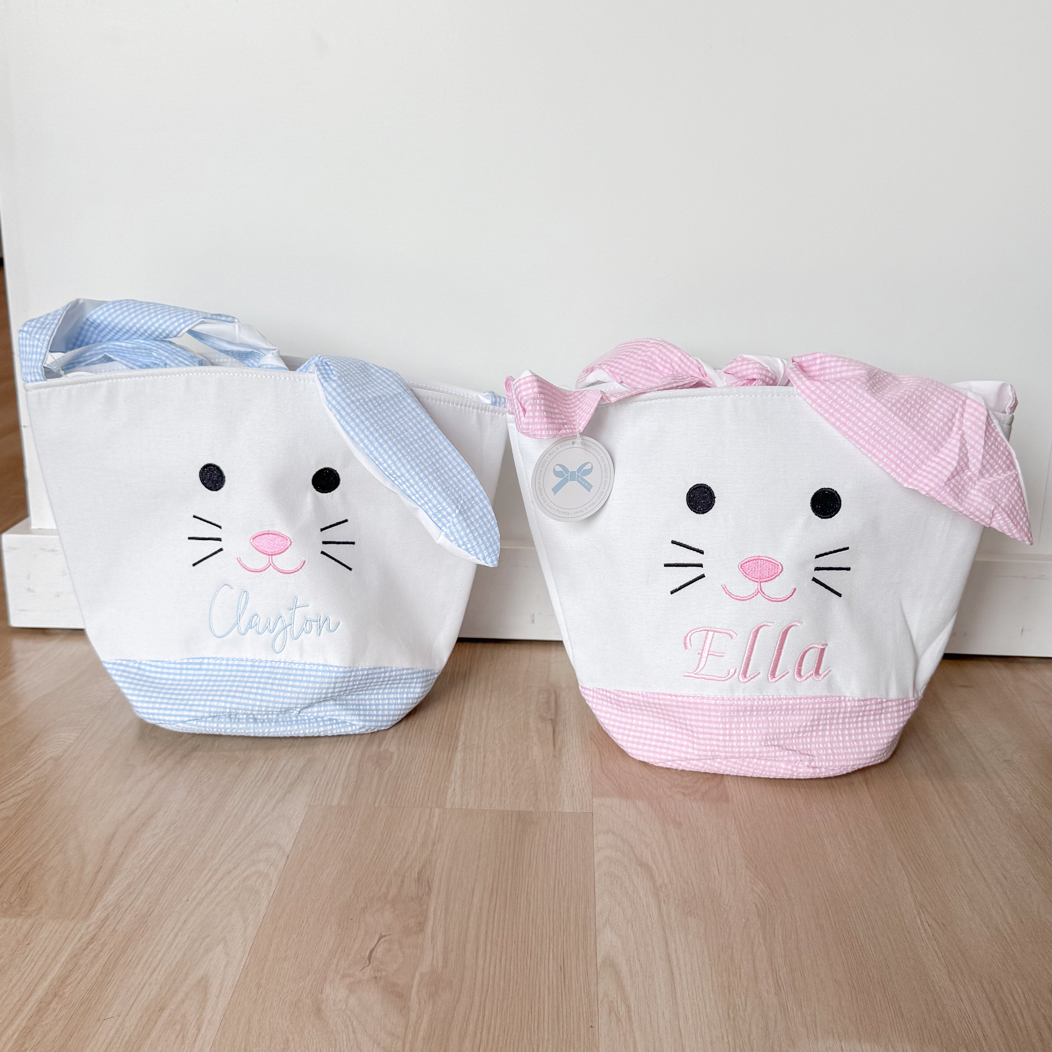 Seersucker Bunny Basket – Easter Must-Have (Pink, Blue, Green, Purple)