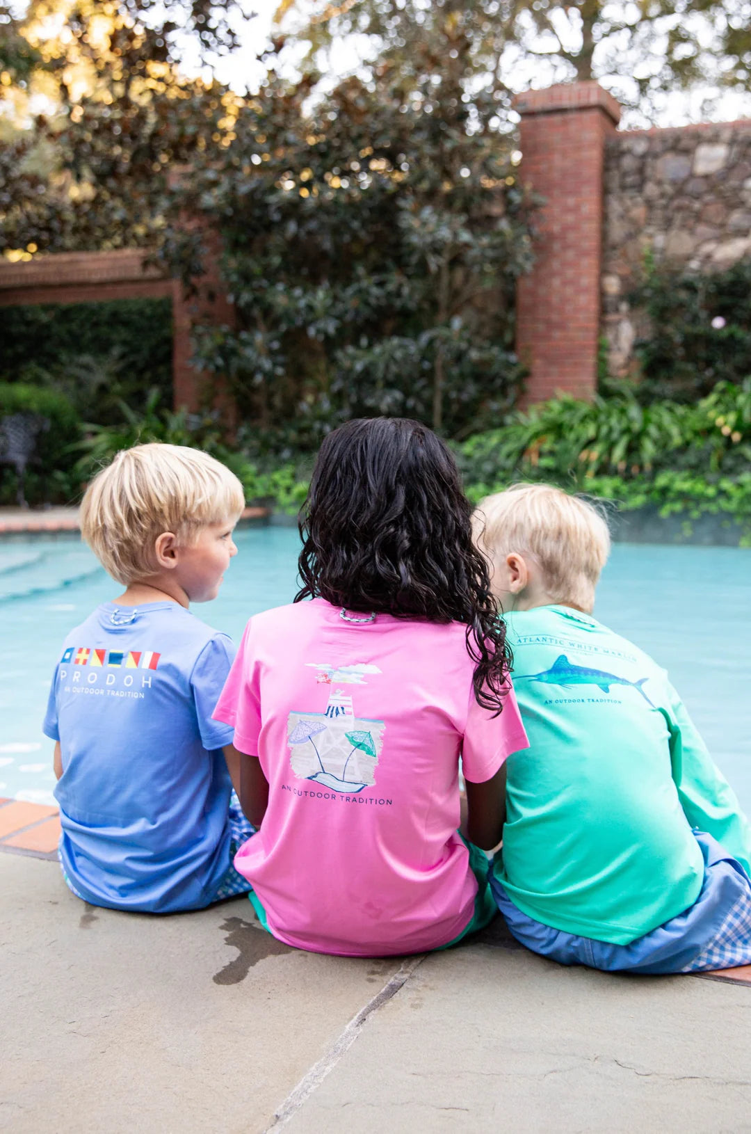 It's no secret that PRODOH Girls Pro Performance Short Sleeve Fishing T-shirt in Fuchsia Pink with Beach Lifeguard artwork sells out super fast! With custom artwork on the back of each performance t-shirt it's no wonder PRODOH tees are a favorite with toddlers, kids, and youth boys and girls. Fabric is UV protective, fast drying, pill-resistant and soft on the skin!! Available in sizes 6 month-youth large 12/14.