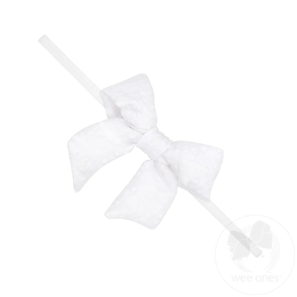 Mini Seersucker Fabric Bow on Nylon Band Pink or White