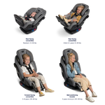 All-in-one car seat converts from rear facing to forward facing to booster mode