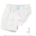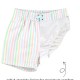Pale Rainbow Stripe Swim Trunks