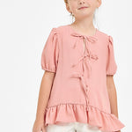 Ribbon Tie Front Ruffle Blouse