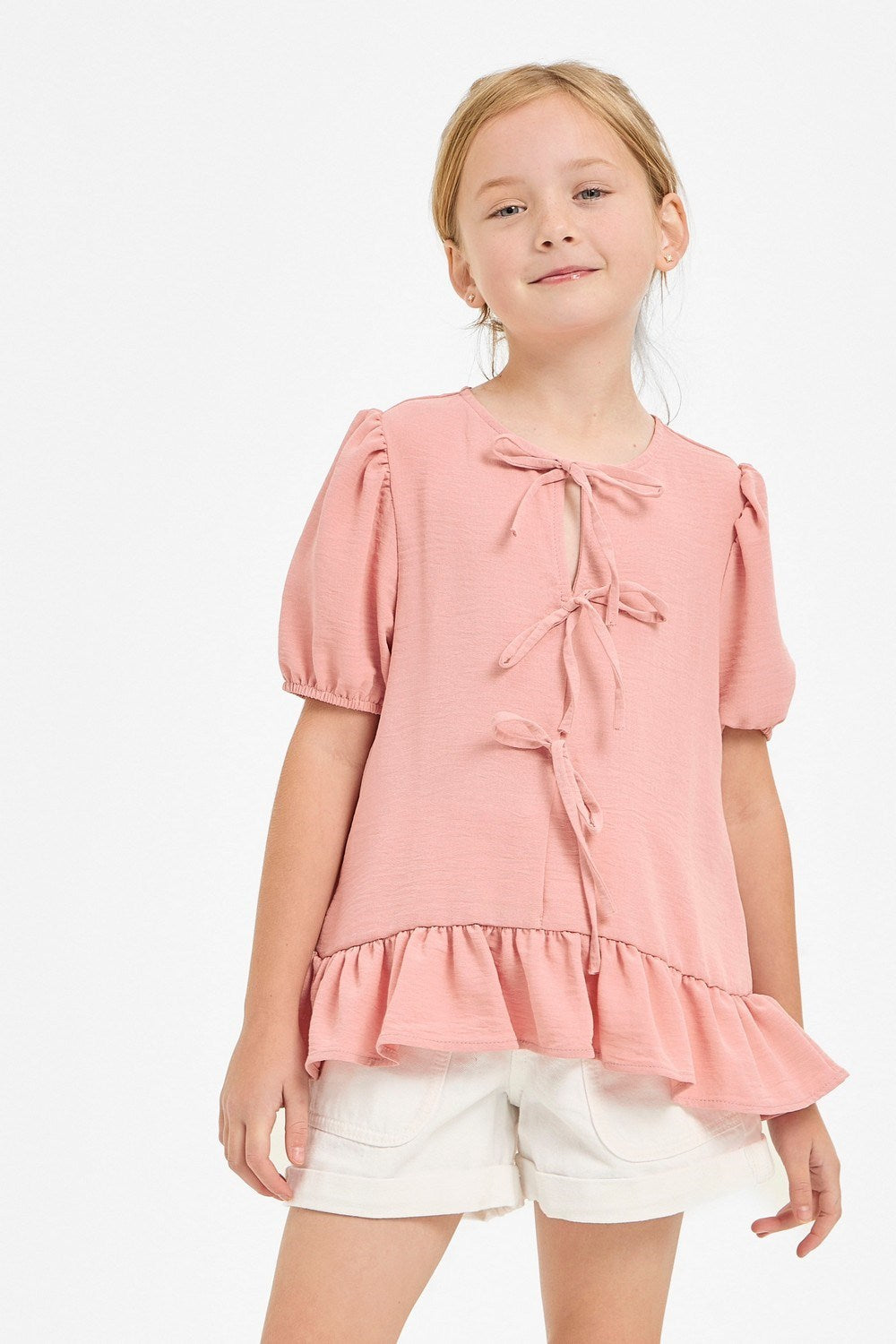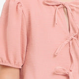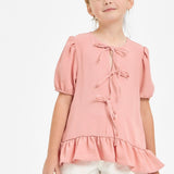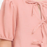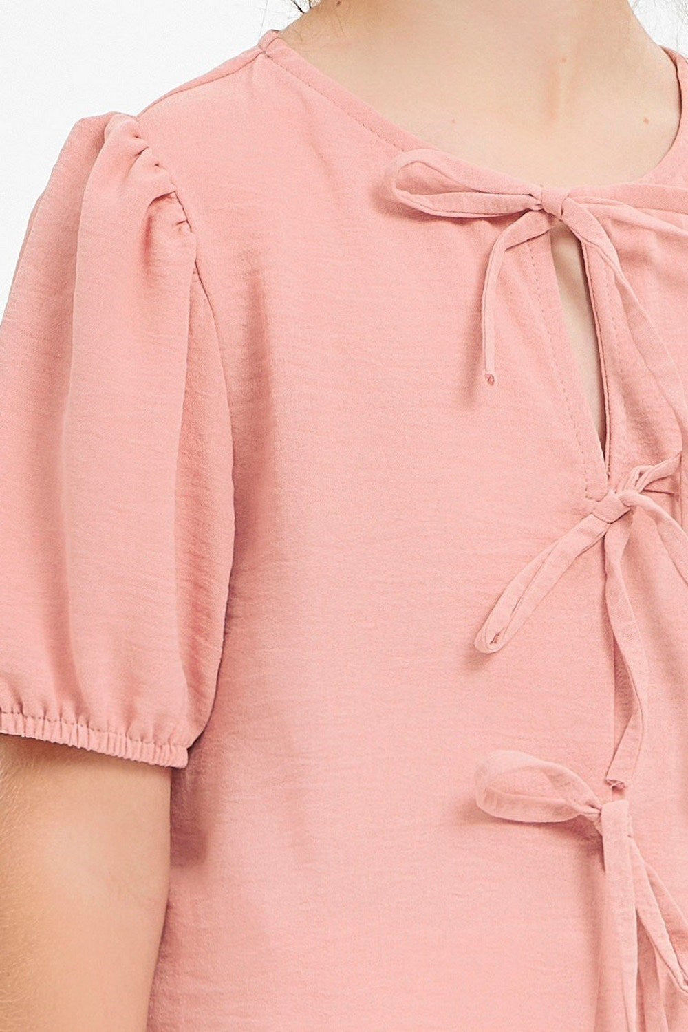 Ribbon Tie Front Ruffle Blouse - Rose Pink