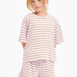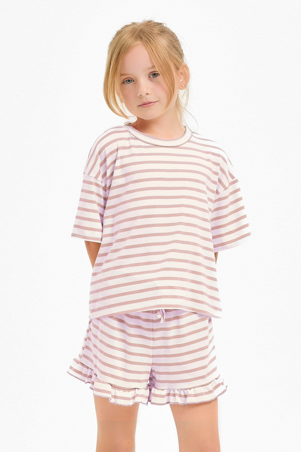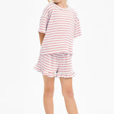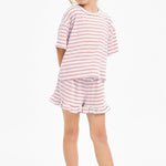 Stripe Top and Ruffle Shorts Set - Dusty Pink