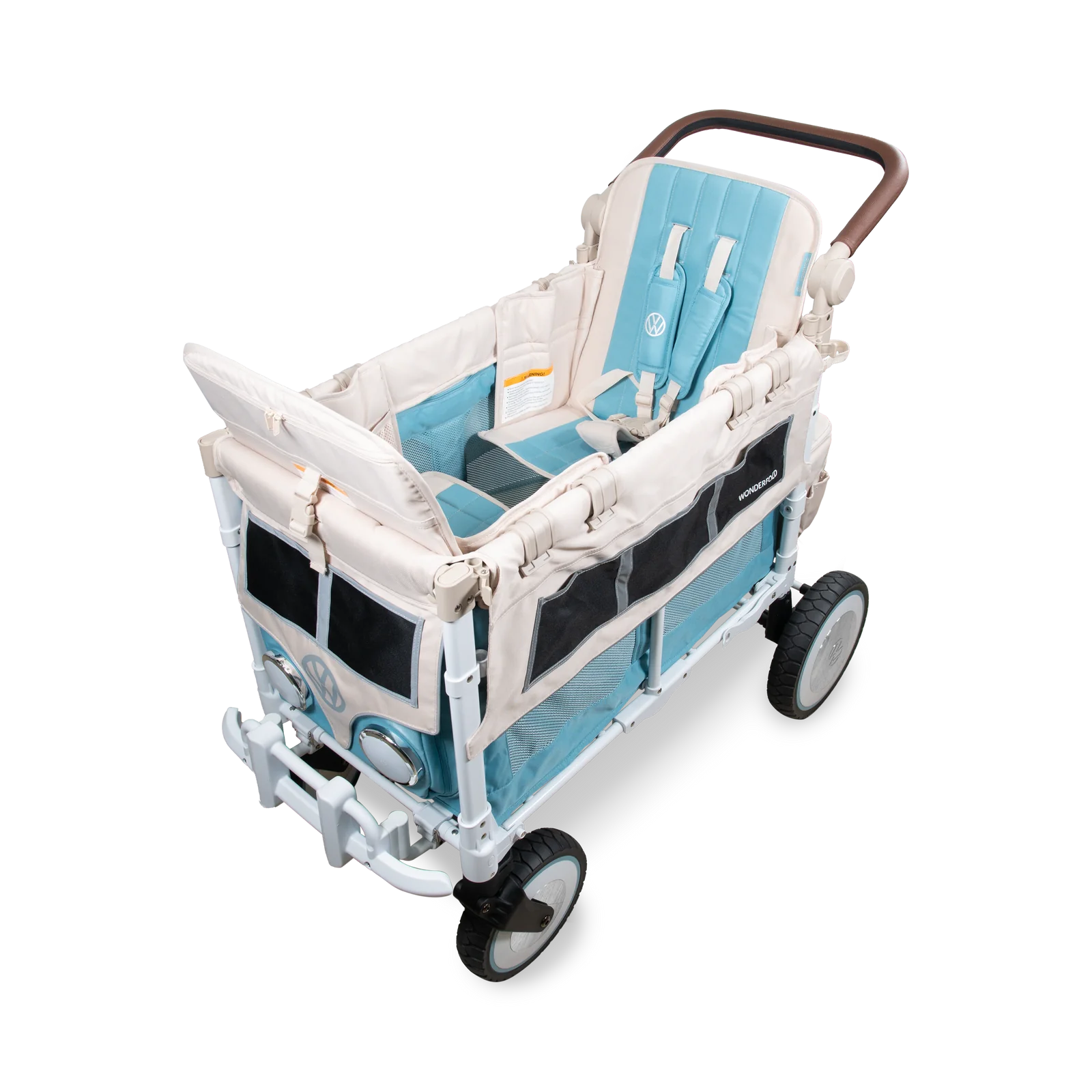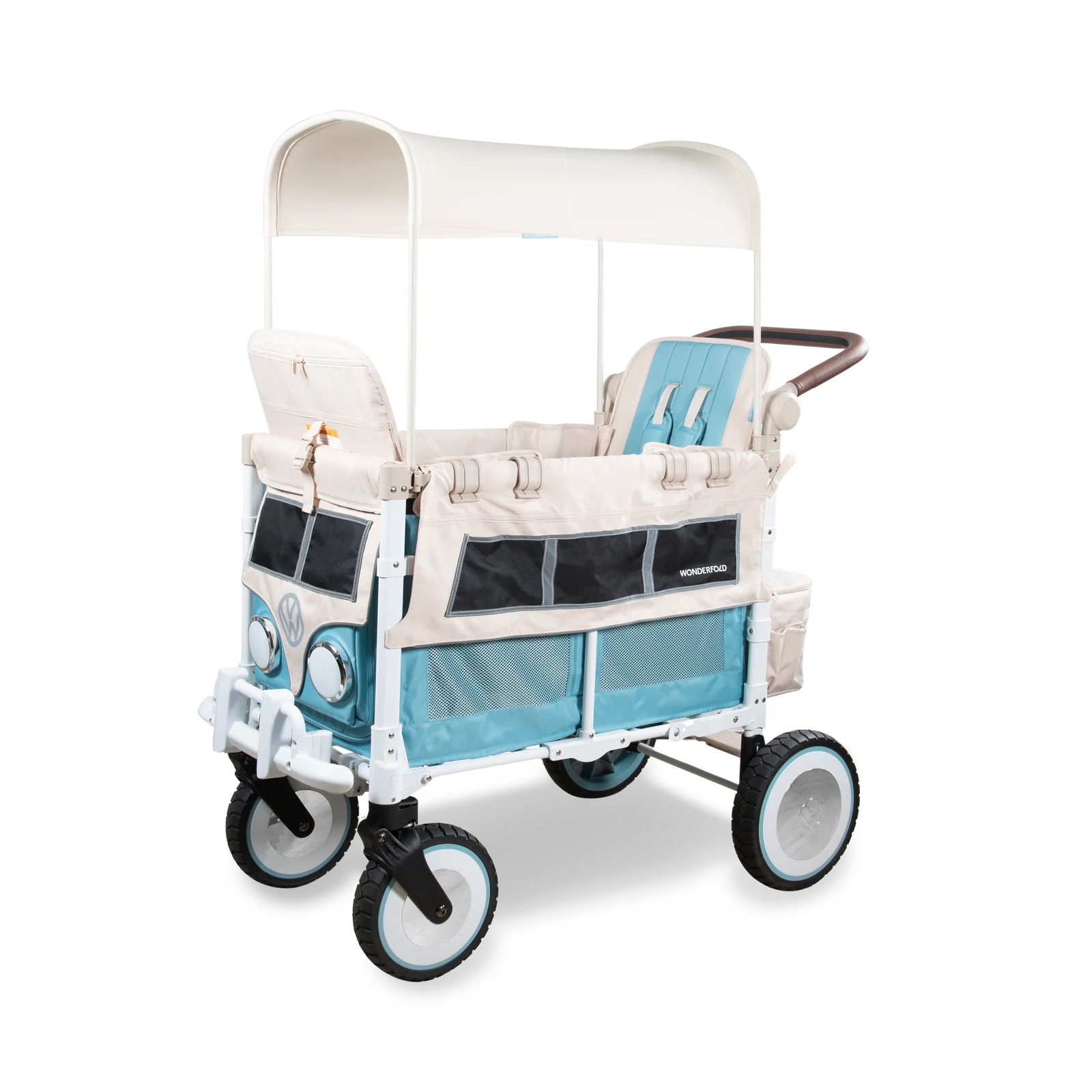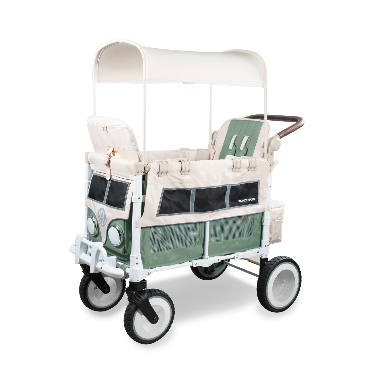 Stroller wagons just got a little more groovy. Inspired by the vintage VW bus, our new special edition stroller wagon will fulfill your nostalgic fantasies with all those classic WonderFold elements. It includes features like the classic VW bumper, functioning headlights, and retro all-terrain XL wheels!